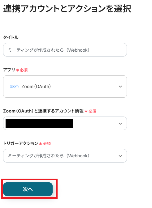 - オペレーション:ミーティングが作成されたら(Webhook)