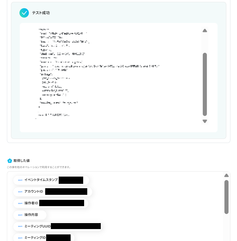 ここで取得した値はこの後の設定で活用するデータとなります。取得した値について詳しくはこちらをご確認ください。