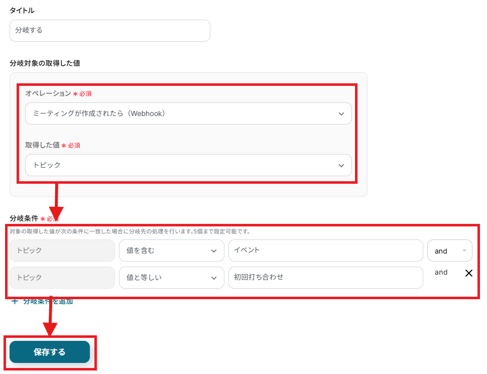 - 分岐条件:トピック・値を含む・イベント