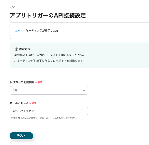 ステップ3:アプリトリガー「ミーティングが終了したら」