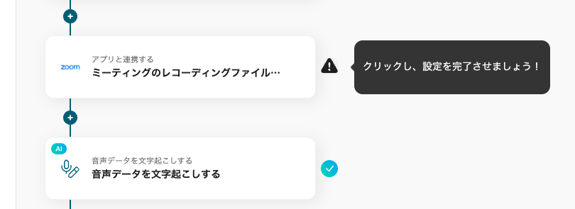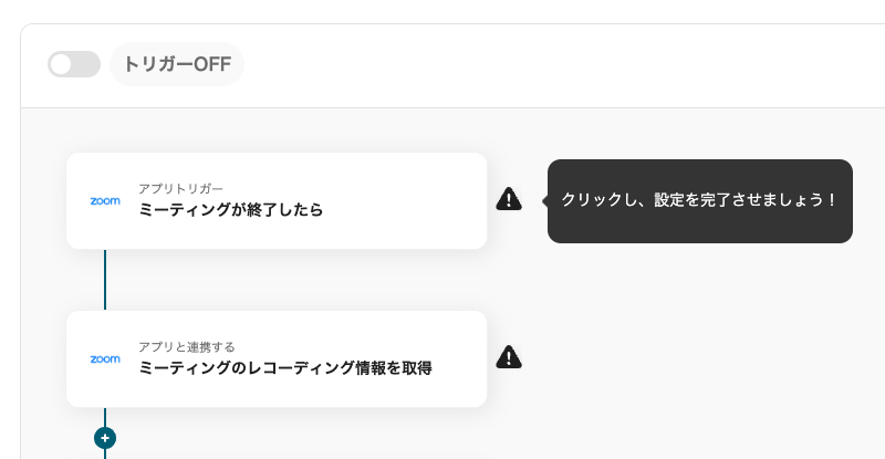 テンプレートの2つ目のプロセスをクリック!ここではZoomから抽出する情報を取得する設定を行います。