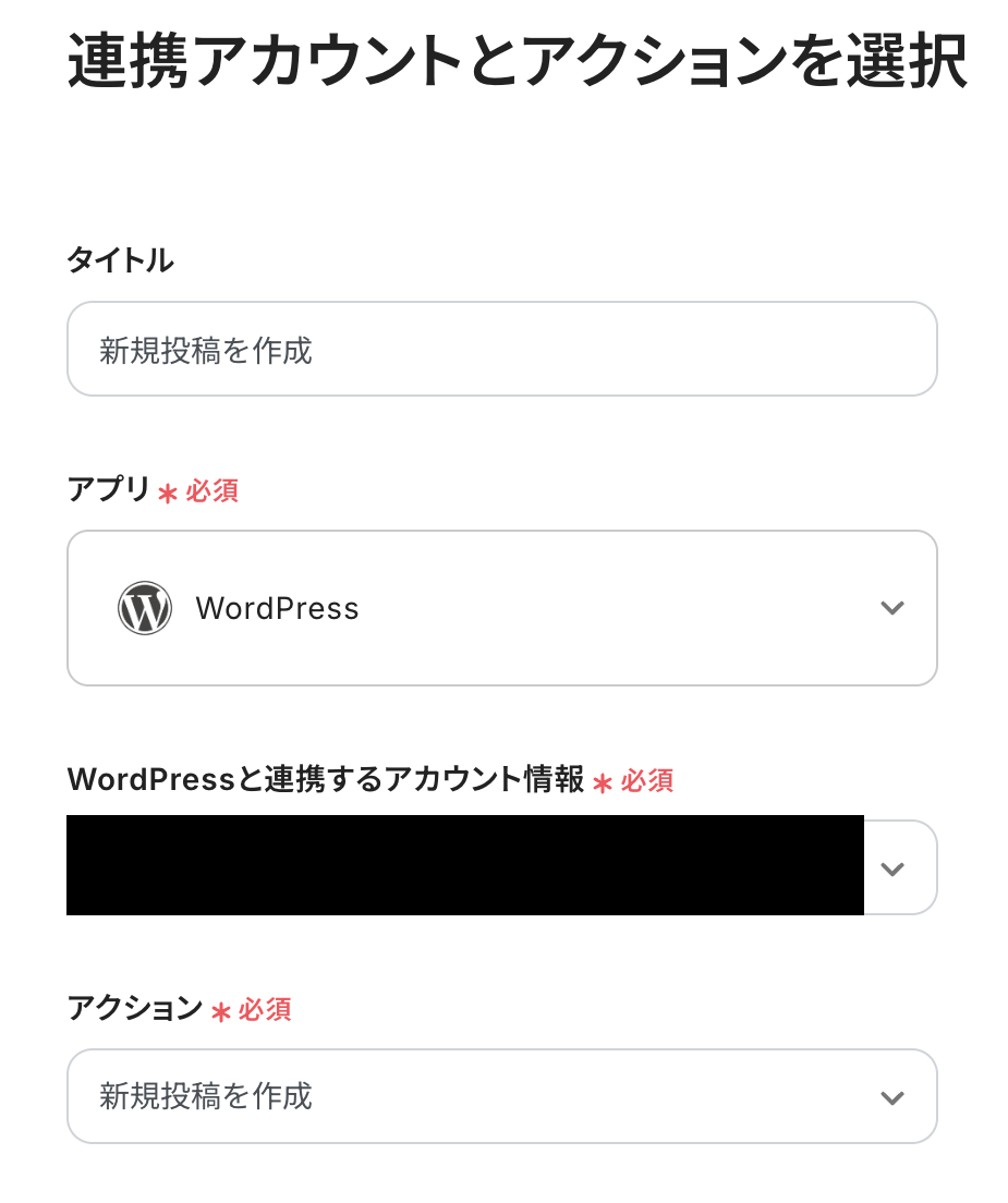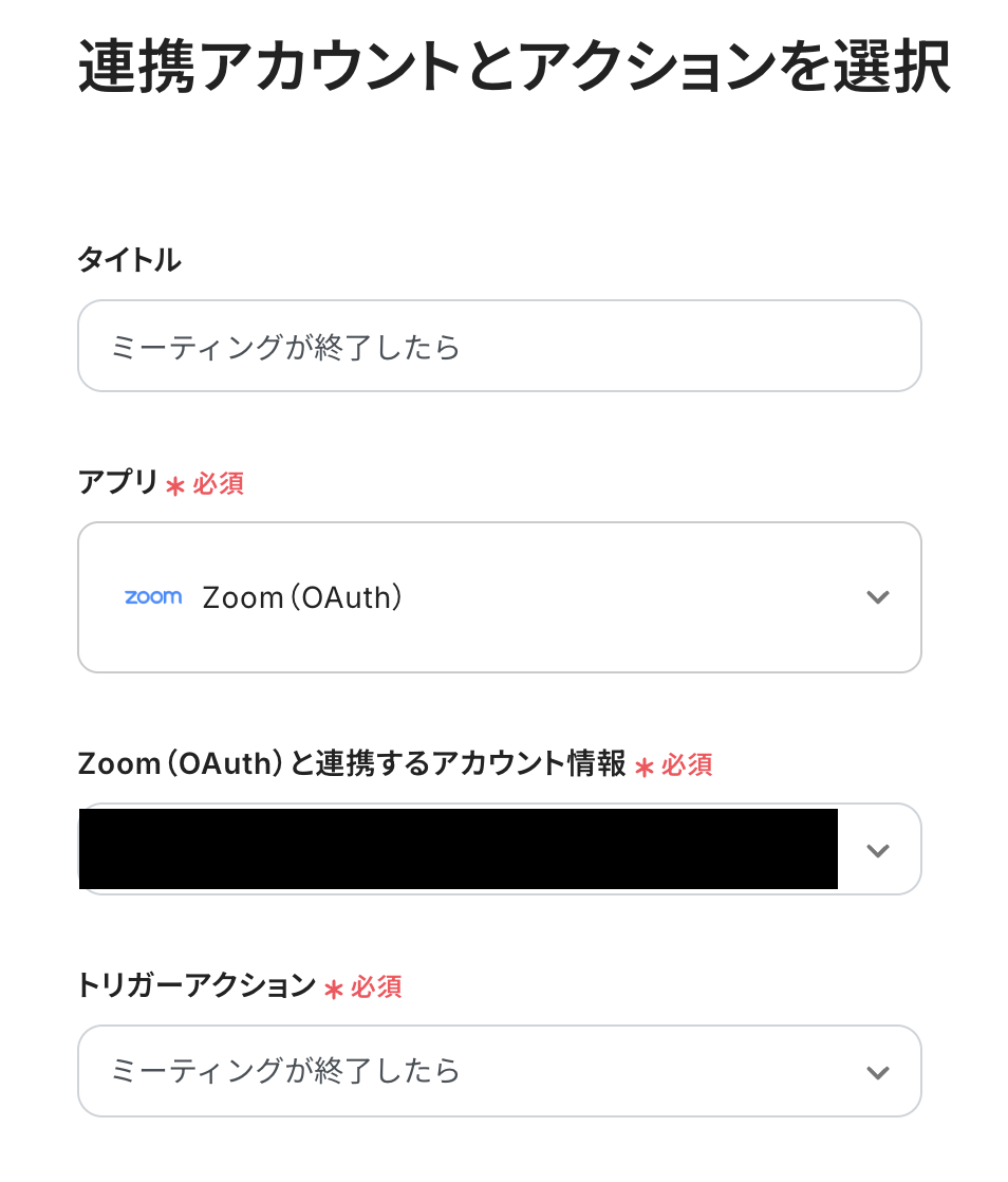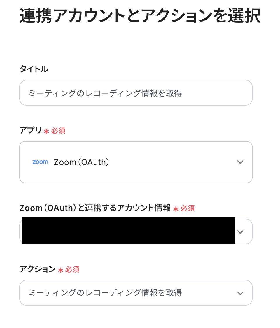 - 連携アカウントとアクションを選択する