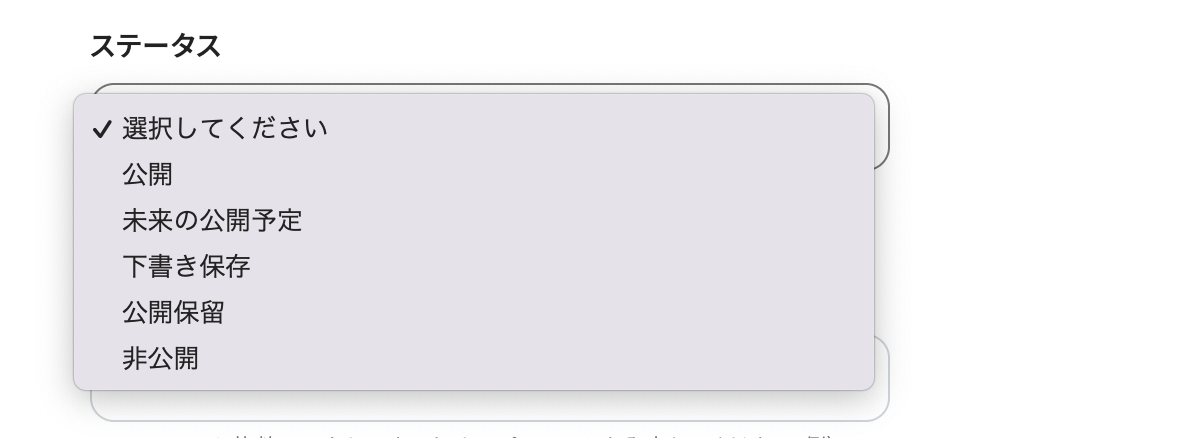 次に「ステータス」を選びます。そのまま公開するのか、下書き保存しておくのかなどを設定しましょう!