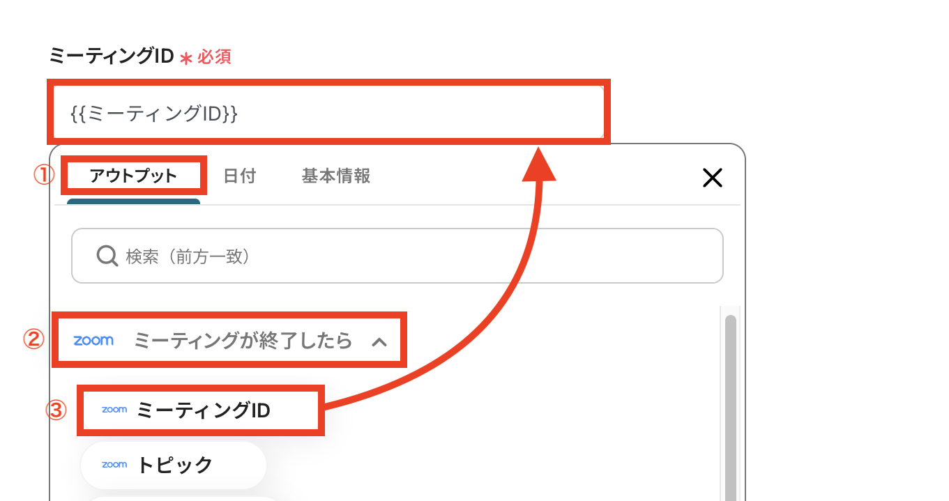 ③「ミーティングID」を選択