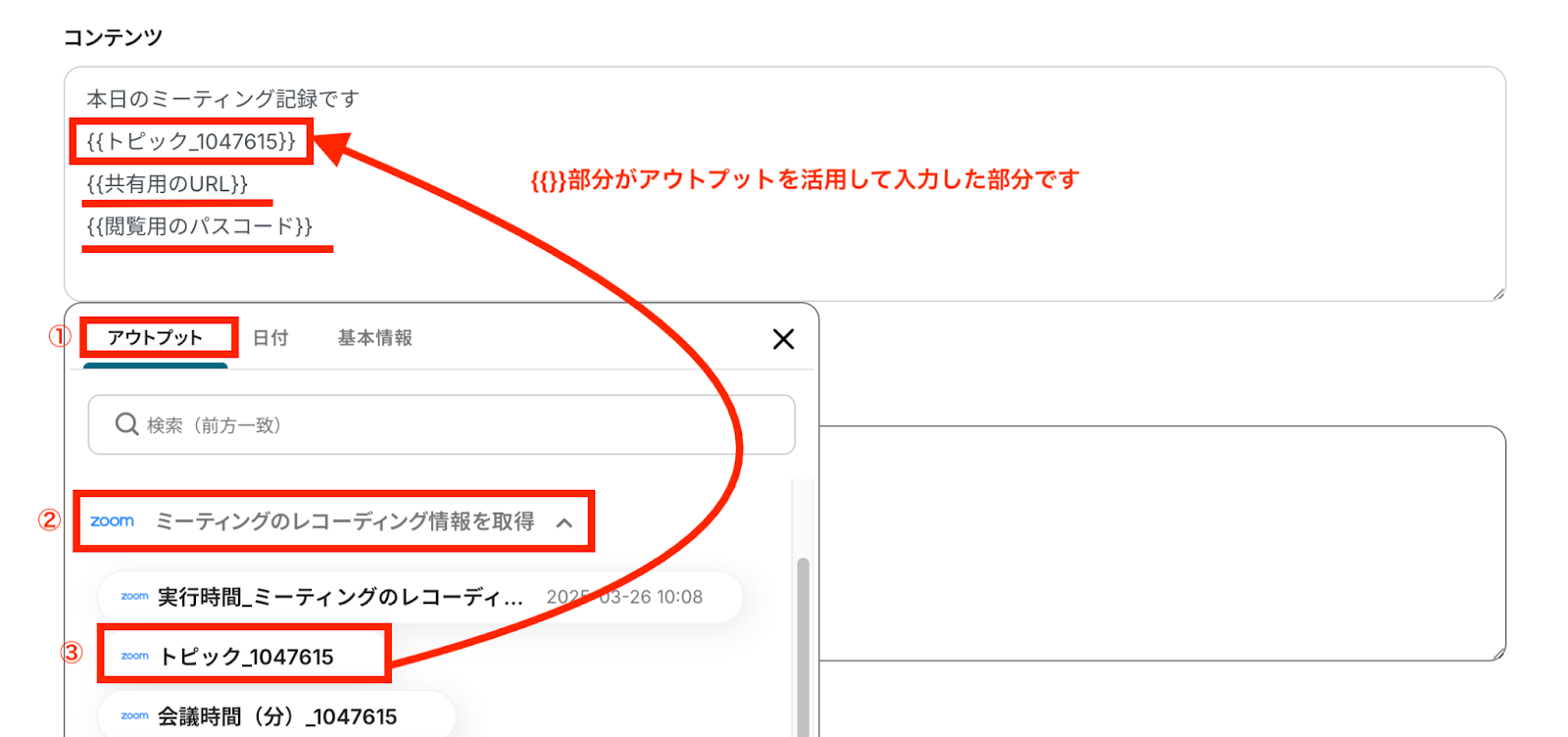 ミーティングの記録として社内サイトに録画リンクや概要を投稿している場合や、オンラインスクールなど会員向けサイトに録画リンクやスクール内容を投稿している場合にオススメのフローです。