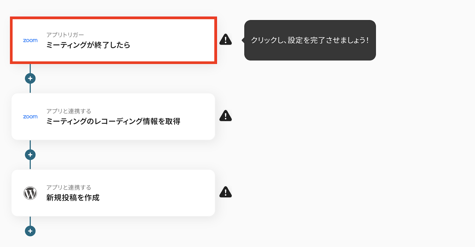 それでは、さっそく実際にZoomとWordPressを連携したフローを作成してみましょう!