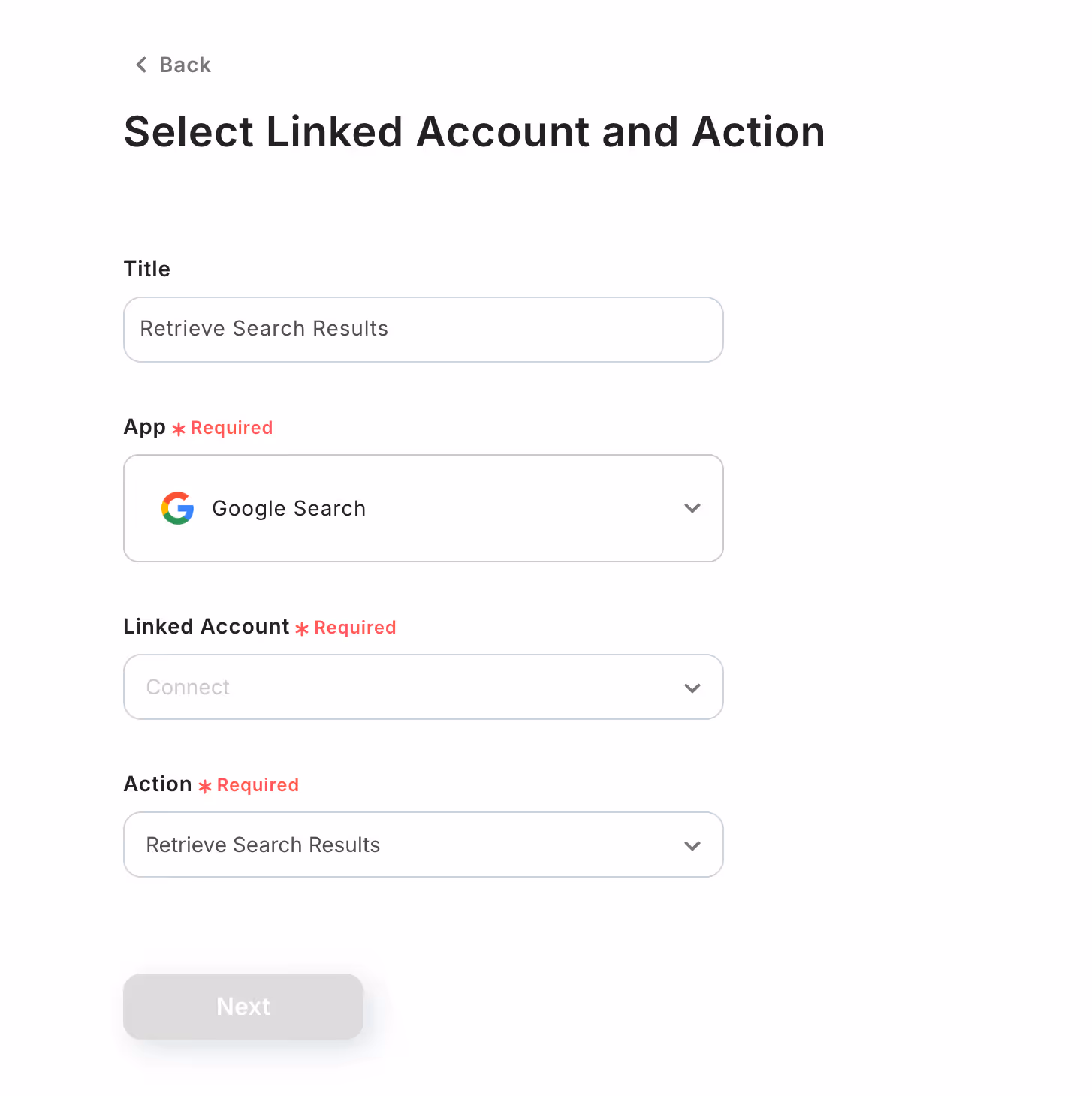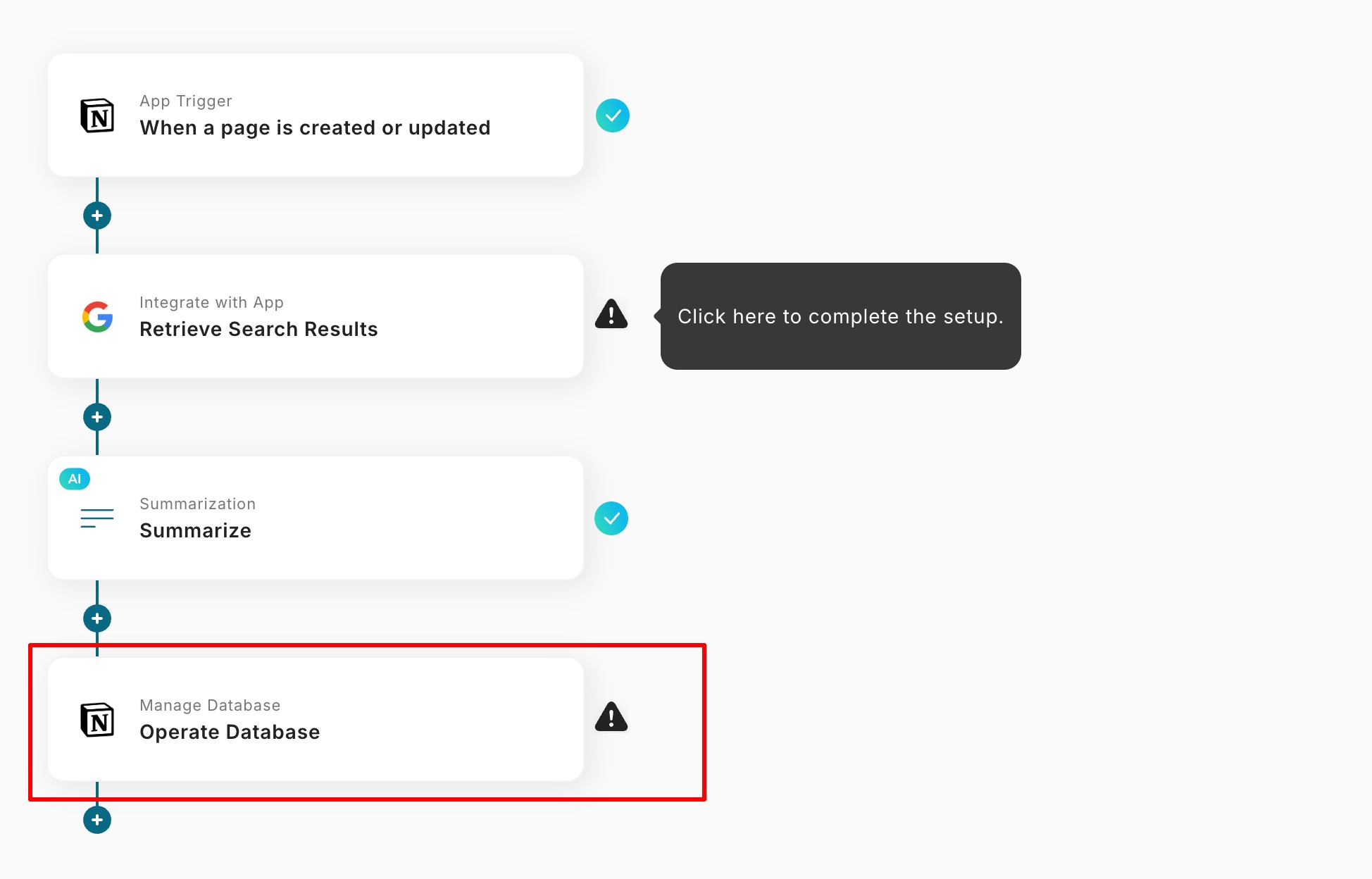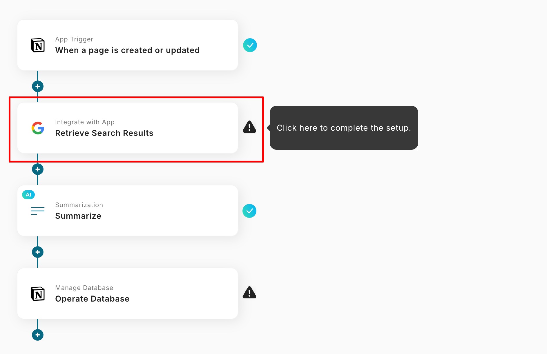 The search query has already been pre-configured so that it will use the “Page Title” from Notion’s retrieved data in the previous step.