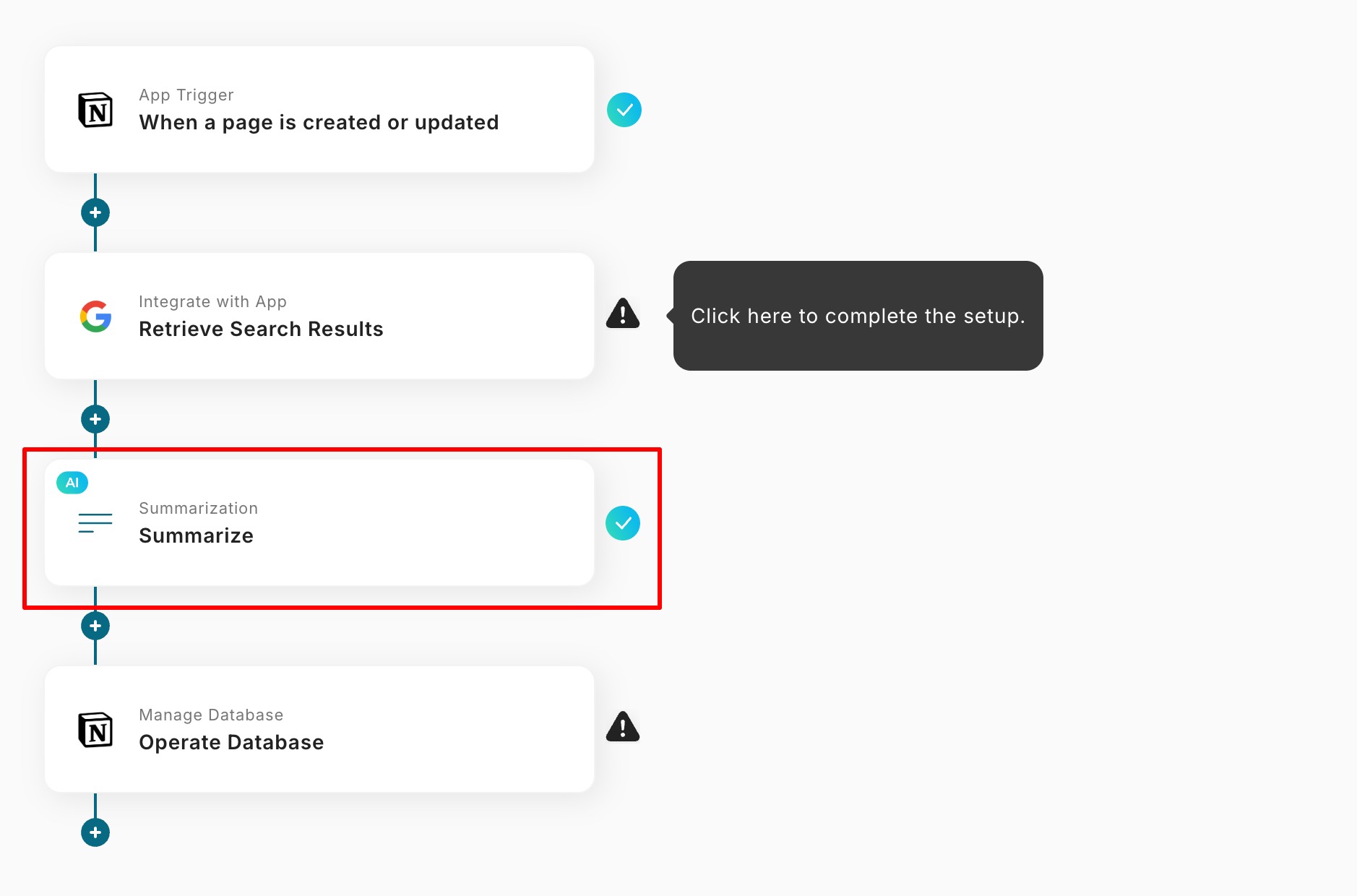 Once set, click “Test”. If the test succeeds, the summarized content should get updated to your specified Notion database.