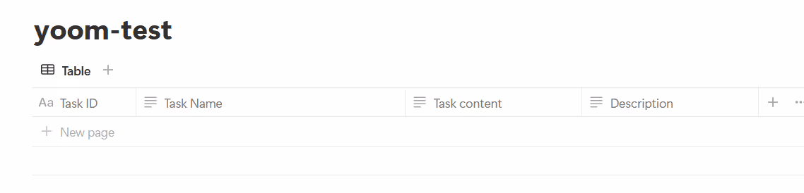 Switch to the Notion screen once. In preparation for the test after the setup is complete, set the item names for adding ClickUp tasks. The following is an example, so please set it as you like! ※ Be sure to use the table view.