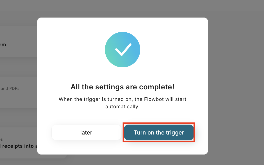 Finally, click "Turn on Trigger" to complete the automation setup.