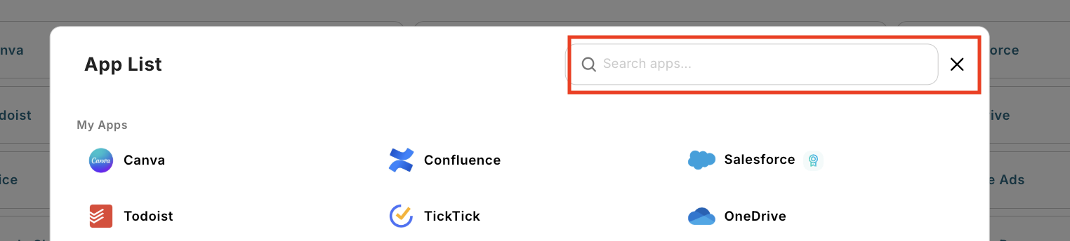 Enter the name of the app you want to connect in the search box.