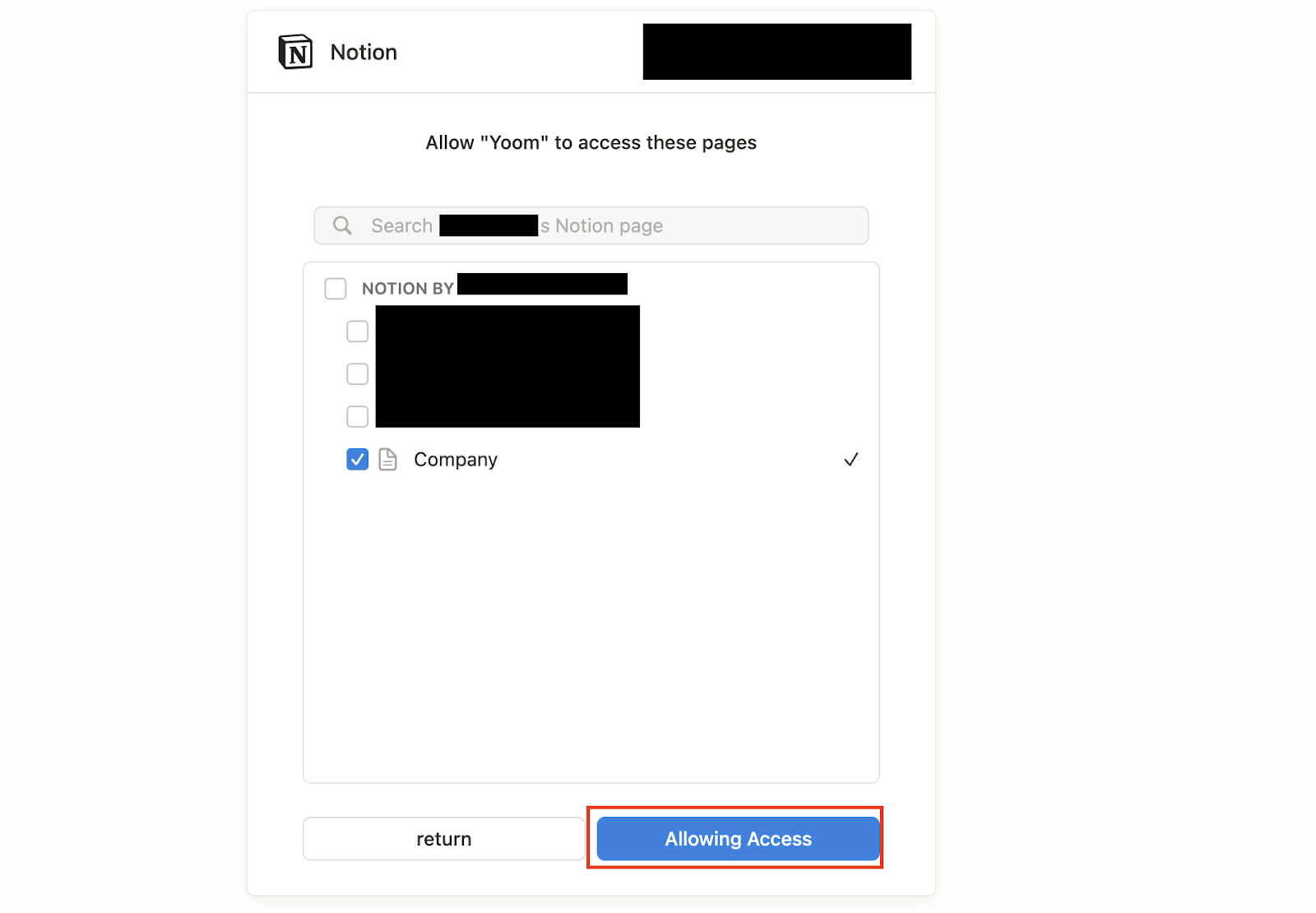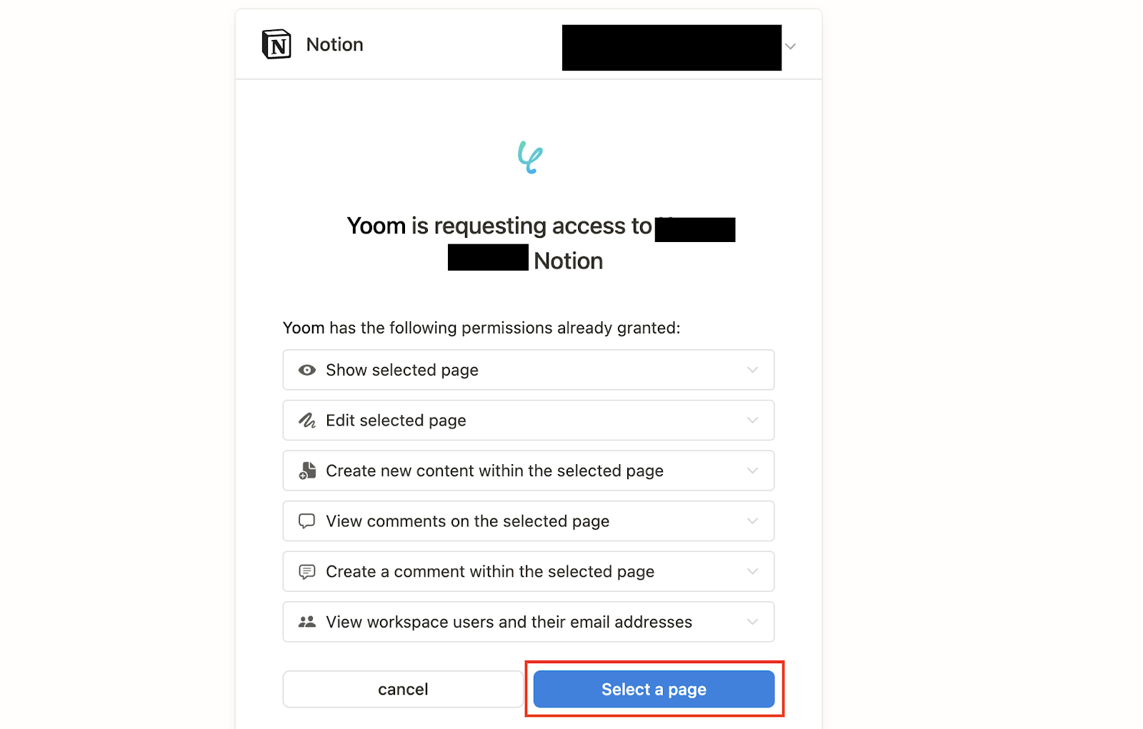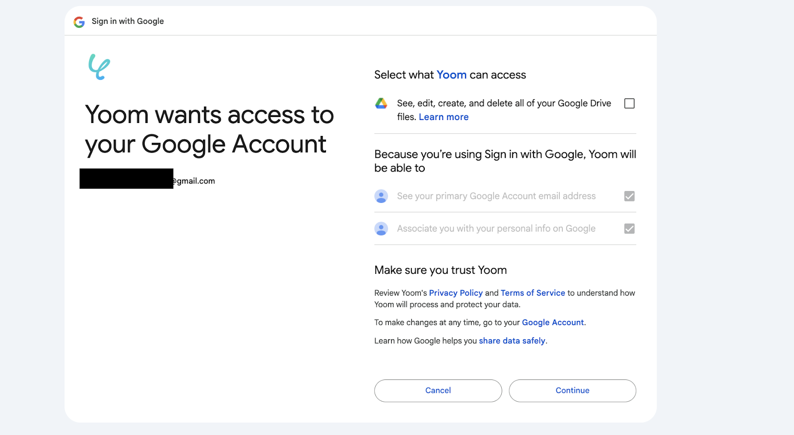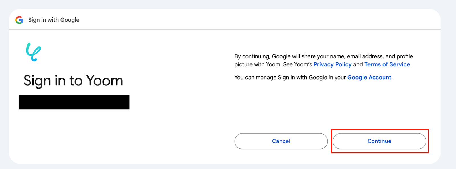 After logging in, a screen will appear asking for permission to access Yoom.