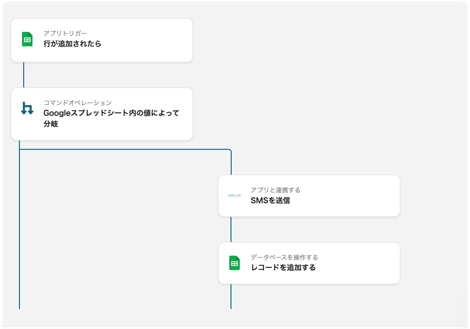 このフローを活用すれば、Googleスプレッドシートの一致したレコードをトリガーにしてSMSが自動送信されるため、担当者は手作業での送信作業から解放されます。これによって業務効率が大幅に向上して人的ミスのリスクも軽減されます。