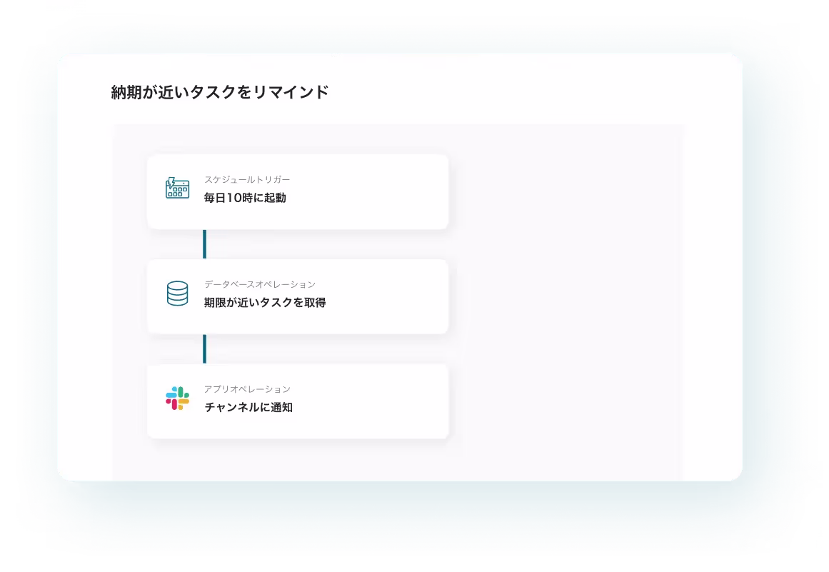 国内外のさまざまなサービスとノーコードで連携!日々繰り返し発生するシステム操作を自動化します。