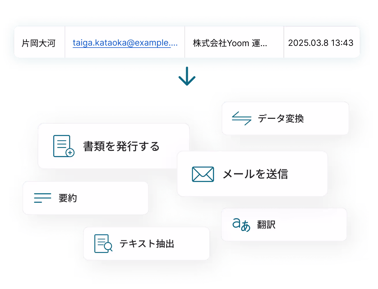 Yoomはデータ入力作業以外にもさまざまな事務作業を自動化し、社内の業務フローを変革します。
