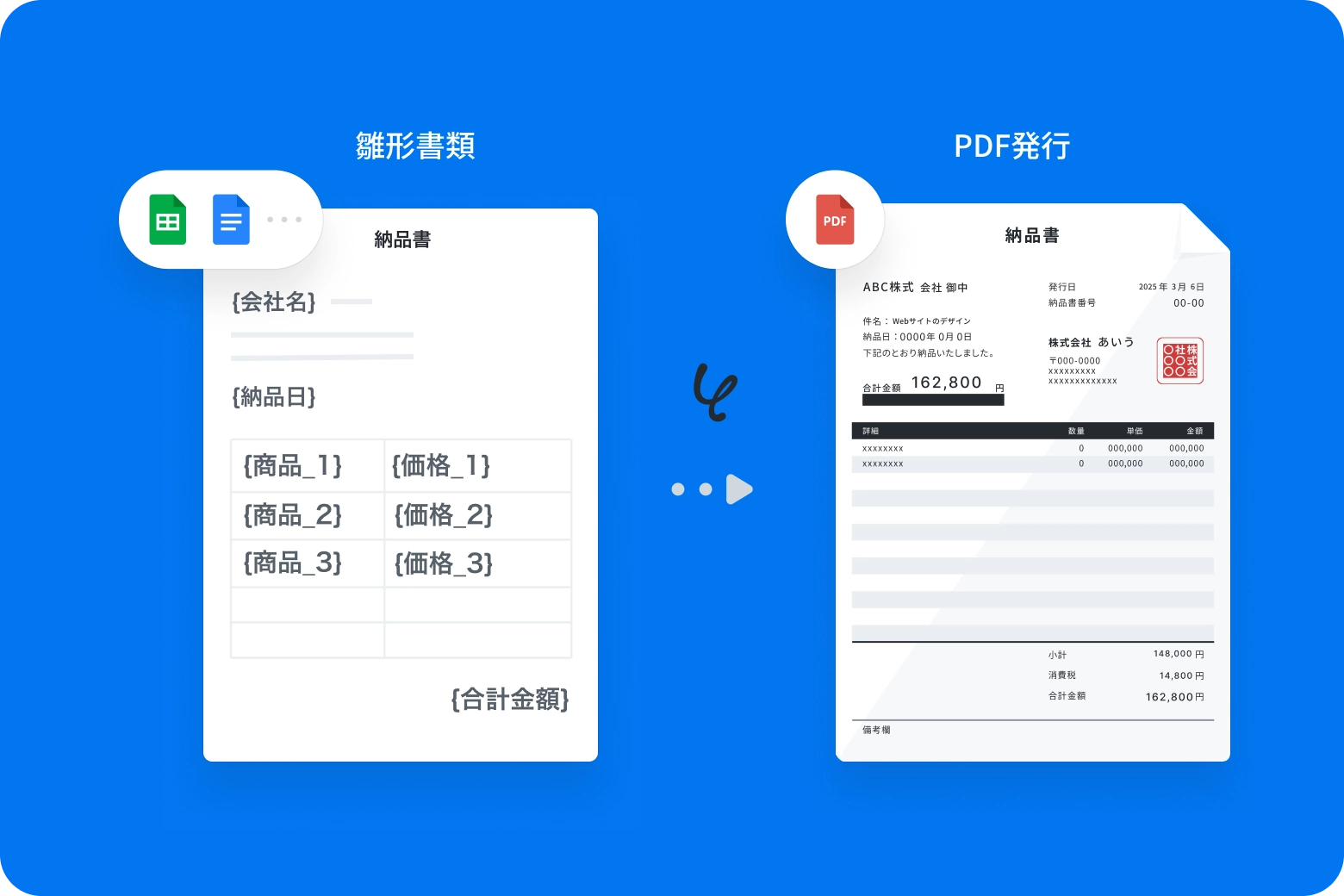 請求書、見積書、契約書、領収書など、あらゆる形式の書類を