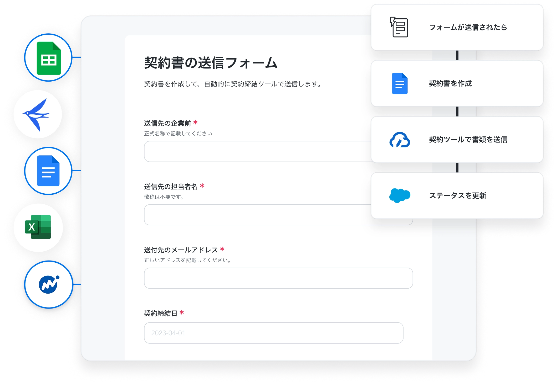 書類の作成以外にも様々な事務作業を自動化し、社内の業務フローを変革します。