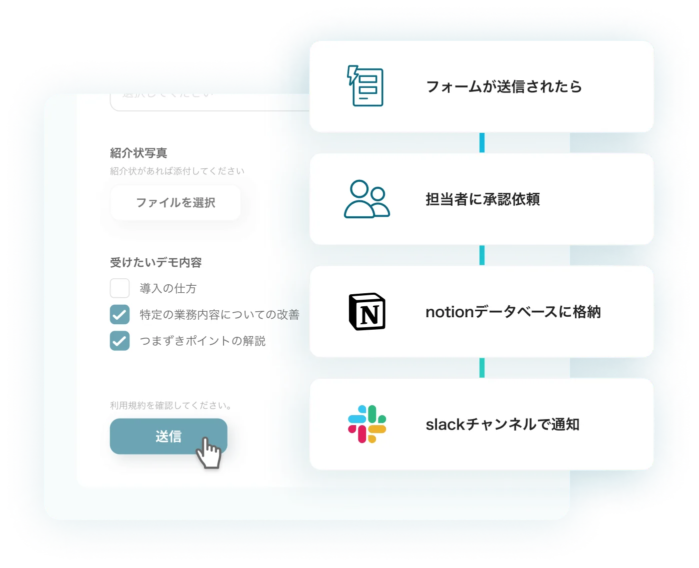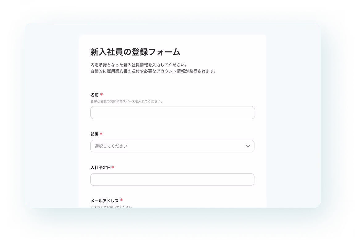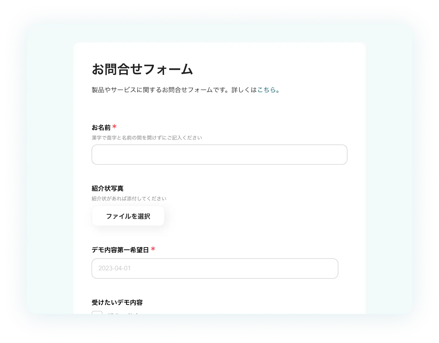 問い合わせフォームや、社内申請フォームなど様々なシーンで活用可能です。