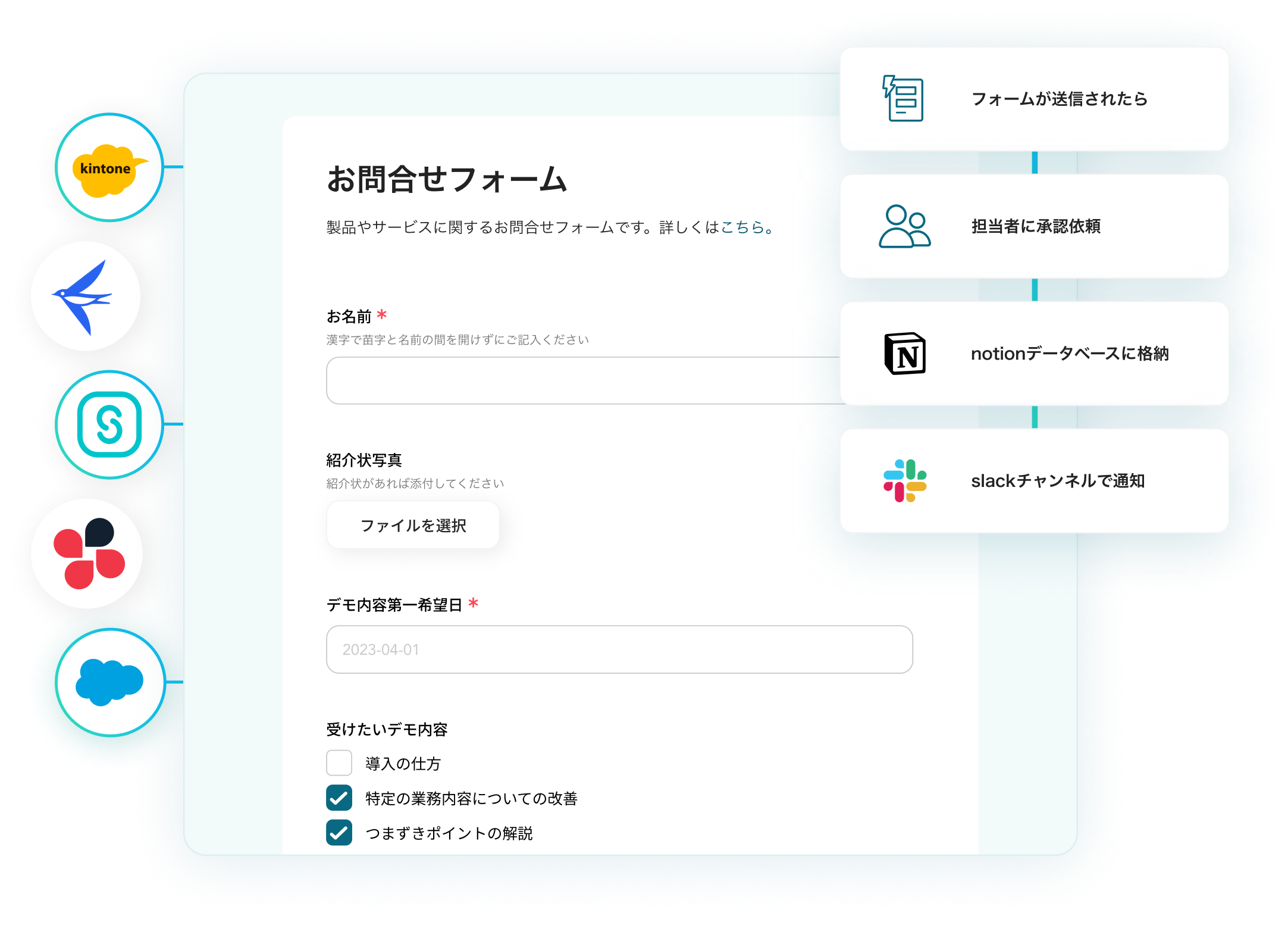 入力フォームを自由に作成し、様々なSaaSやAIと自由に連携!