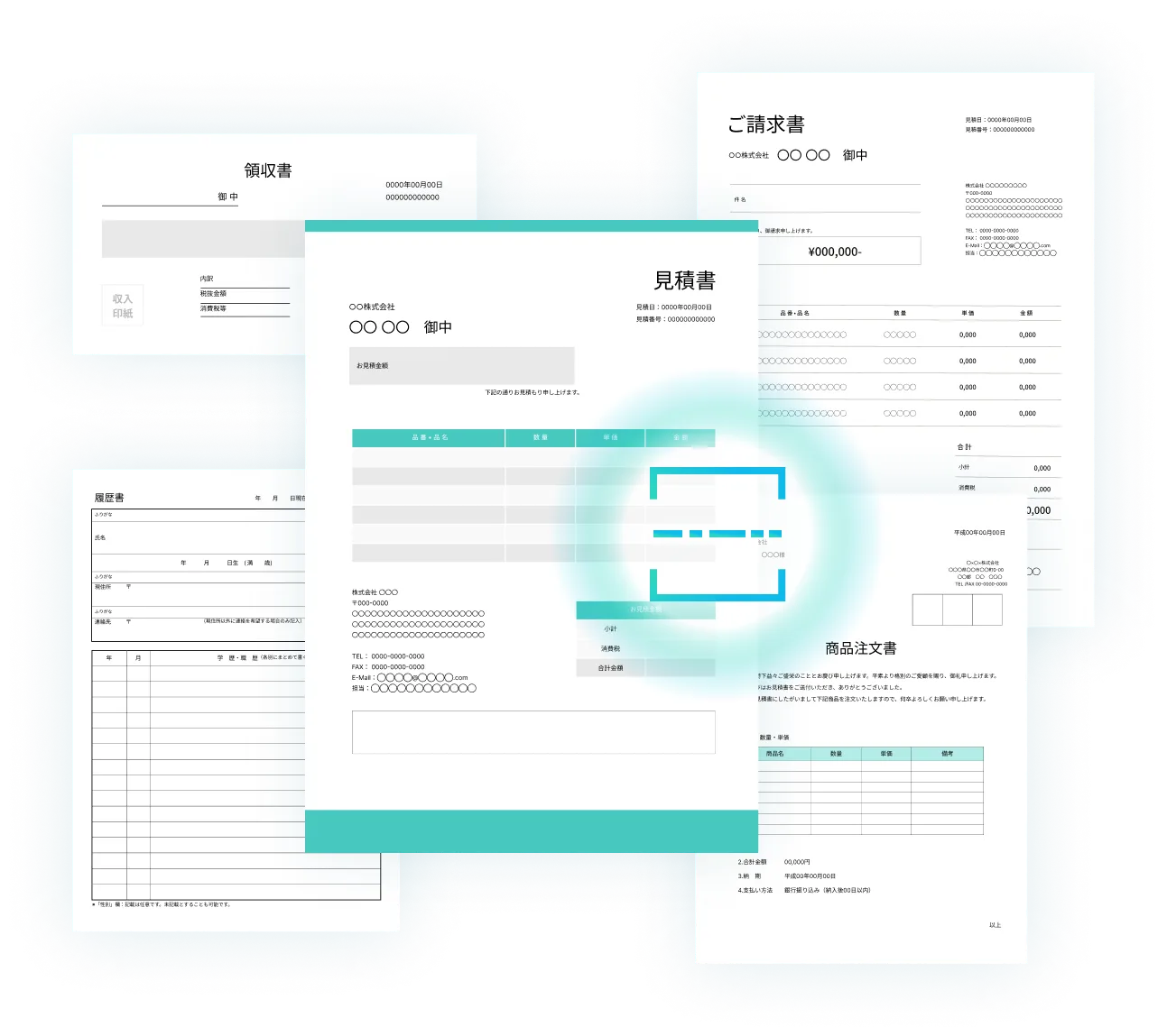 請求書、履歴書、申込書などの