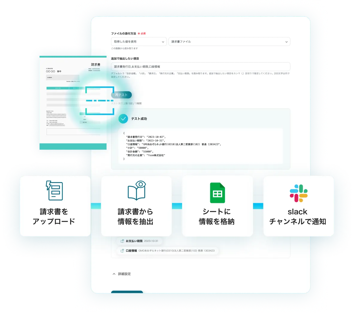 データベースへの情報の格納、チャット通知など、OCR後のフローをボットが自動的に実行します。