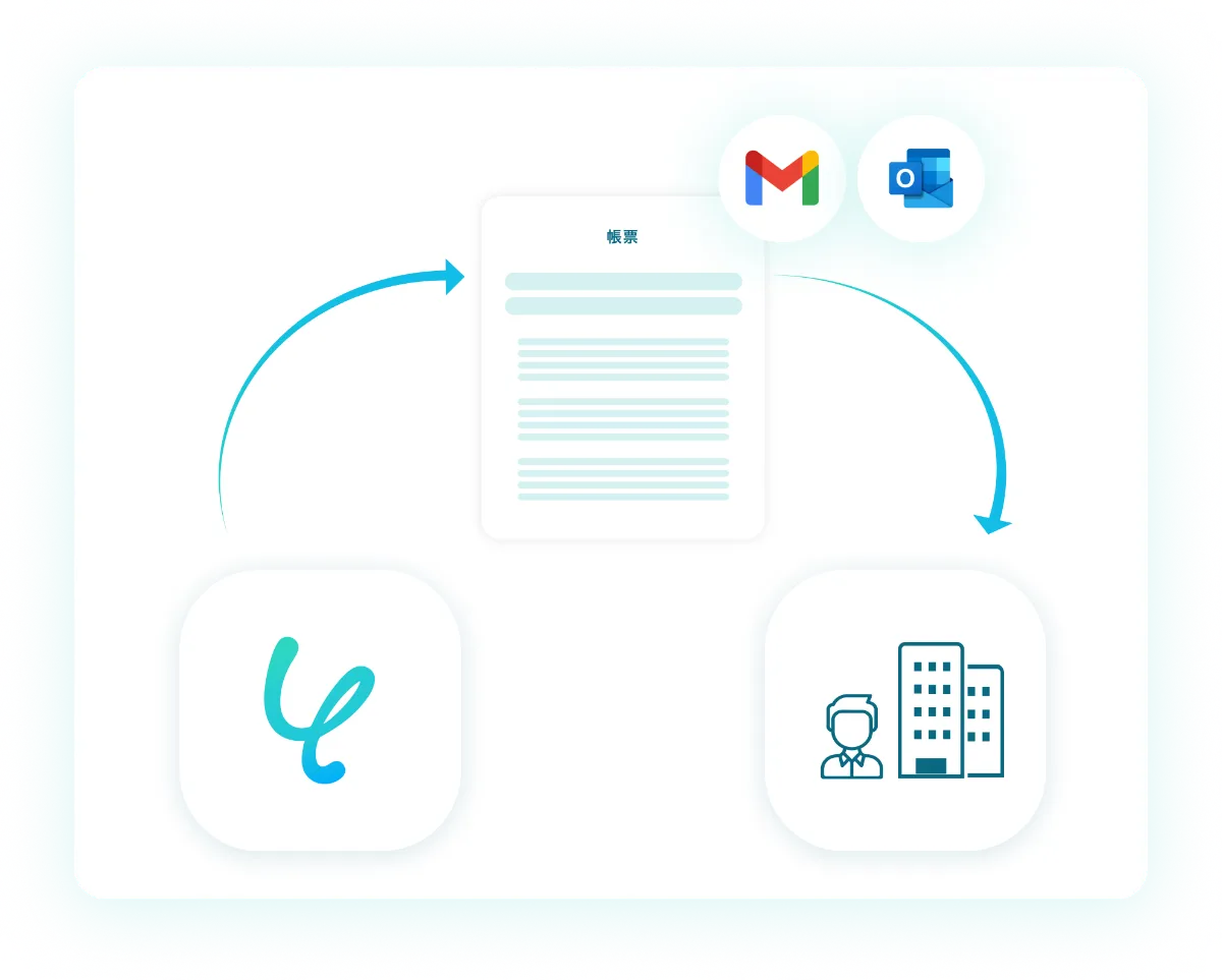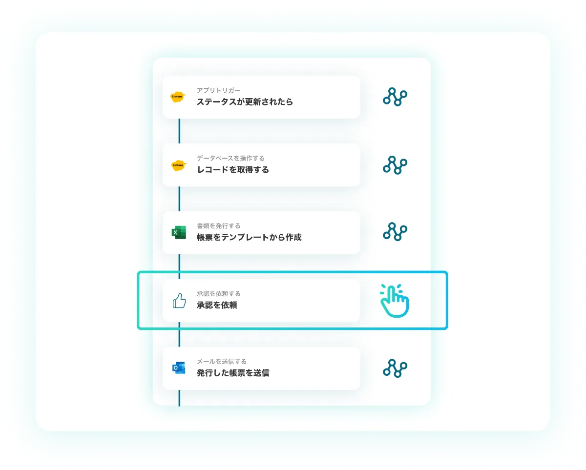 作成した帳票のPDF化、メール送付までワンストップで自動化できます。
