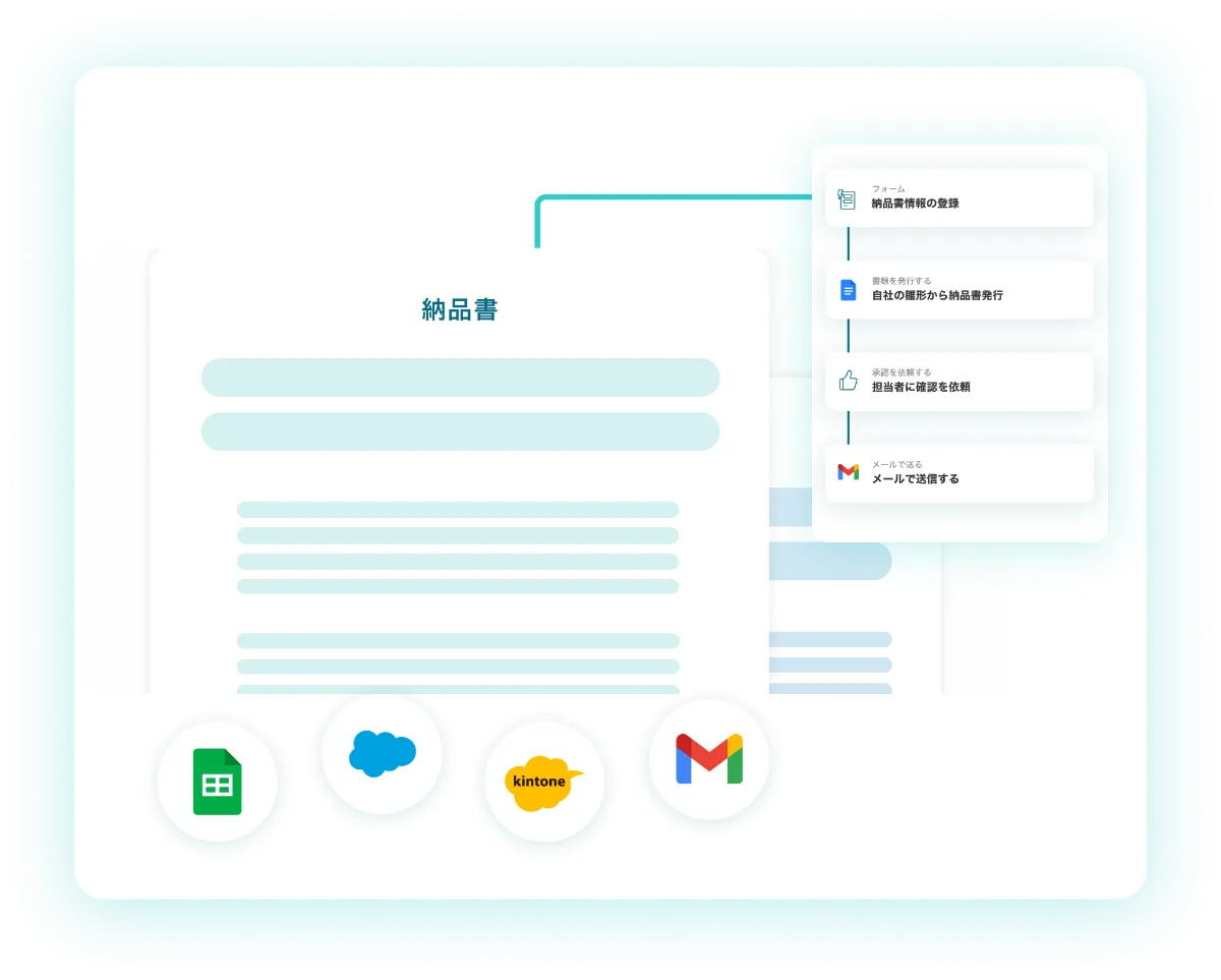 納品書の作成・送付を自動で行い、納品にかかる定型業務を自動化します。