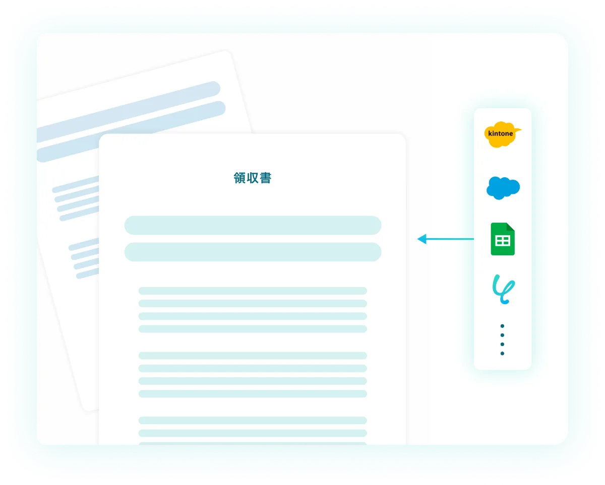 連携したサービスやデータベースのデータと既にご使用の雛形を利用して領収書を自動作成できます。