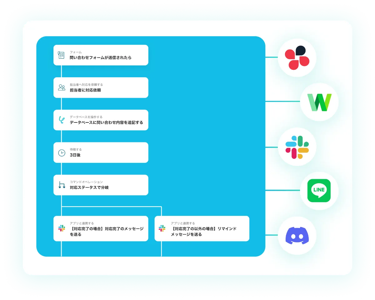 顧客からの問い合わせを集約し、一次対応をはじめとしたフローを自動化することで問い合わせ対応にかかる時間を短縮します。
