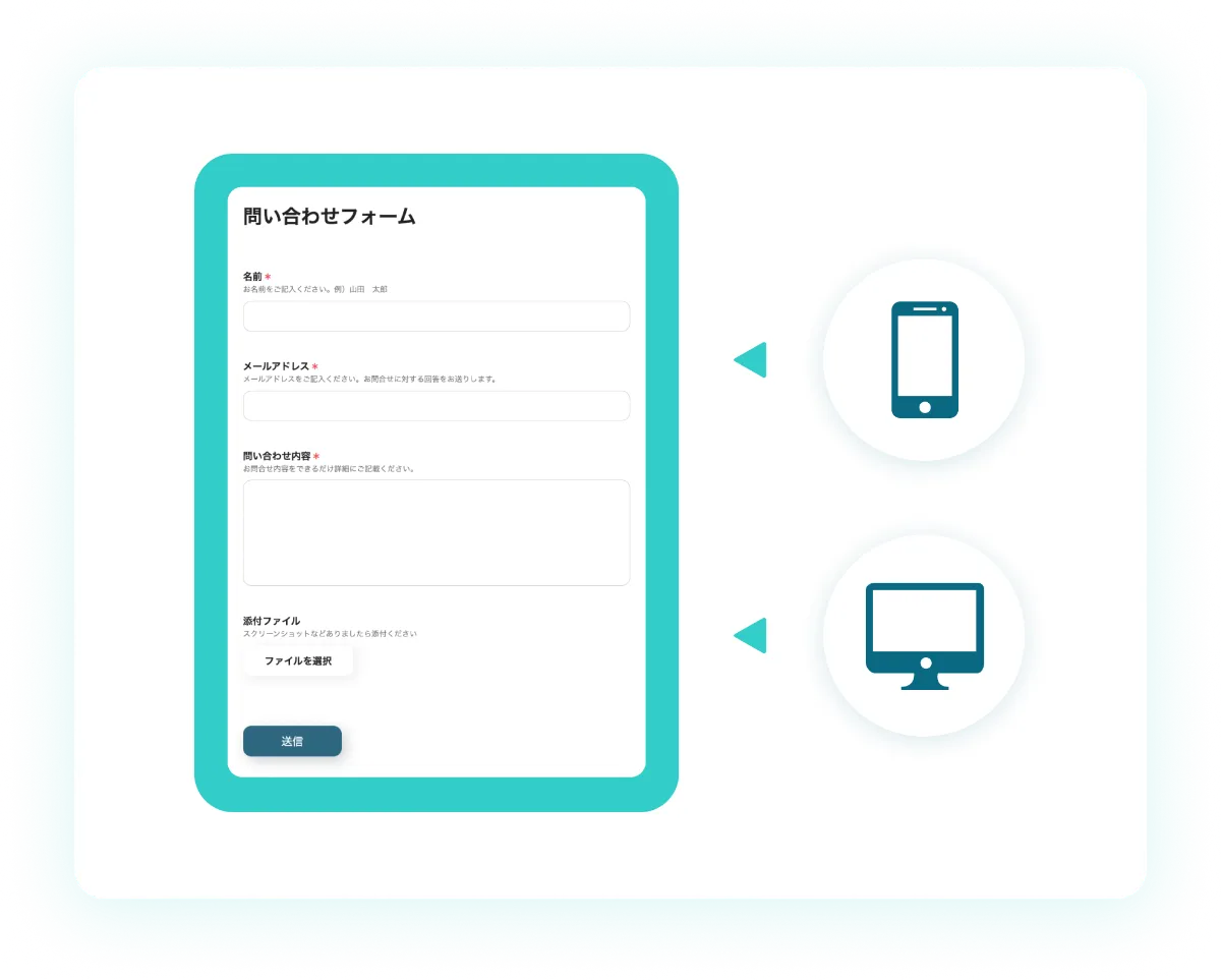 入力フォームをURLで外部共有し問い合わせを集約します。また、問い合わせ後に自動で一次対応を実施することも可能です。