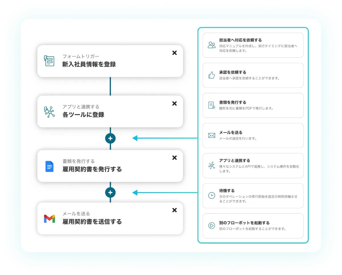 入力データを利用した契約書の作成・送付など、その後の作業を組み込めば業務全体を自動化することも可能です。