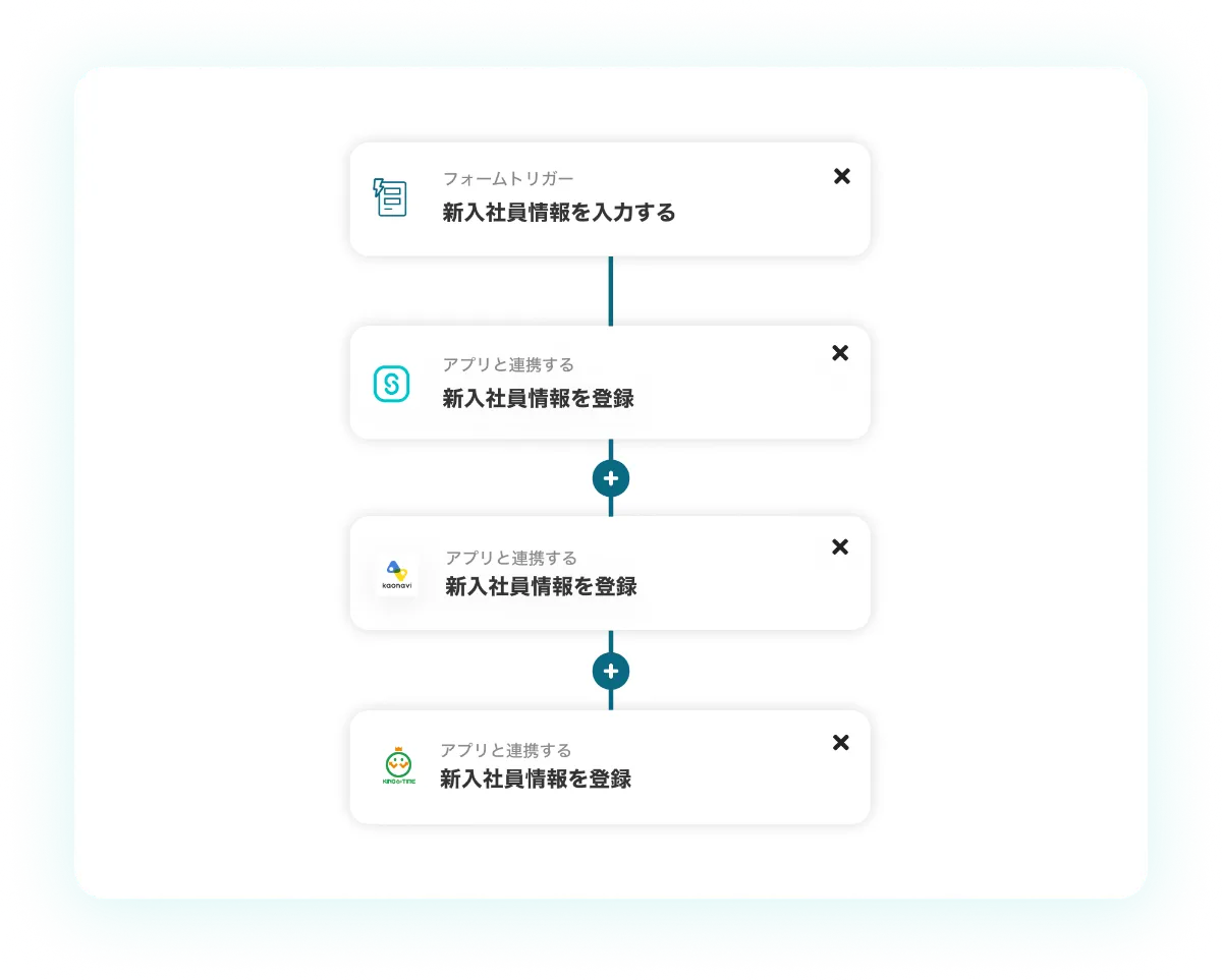 データを追加したい複数のツールに連携したフローをノーコードで簡単に作成できます。