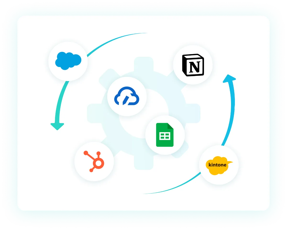 データの追加・更新も自動で同期し、繰り返し発生するデータ入力作業を自動化します。