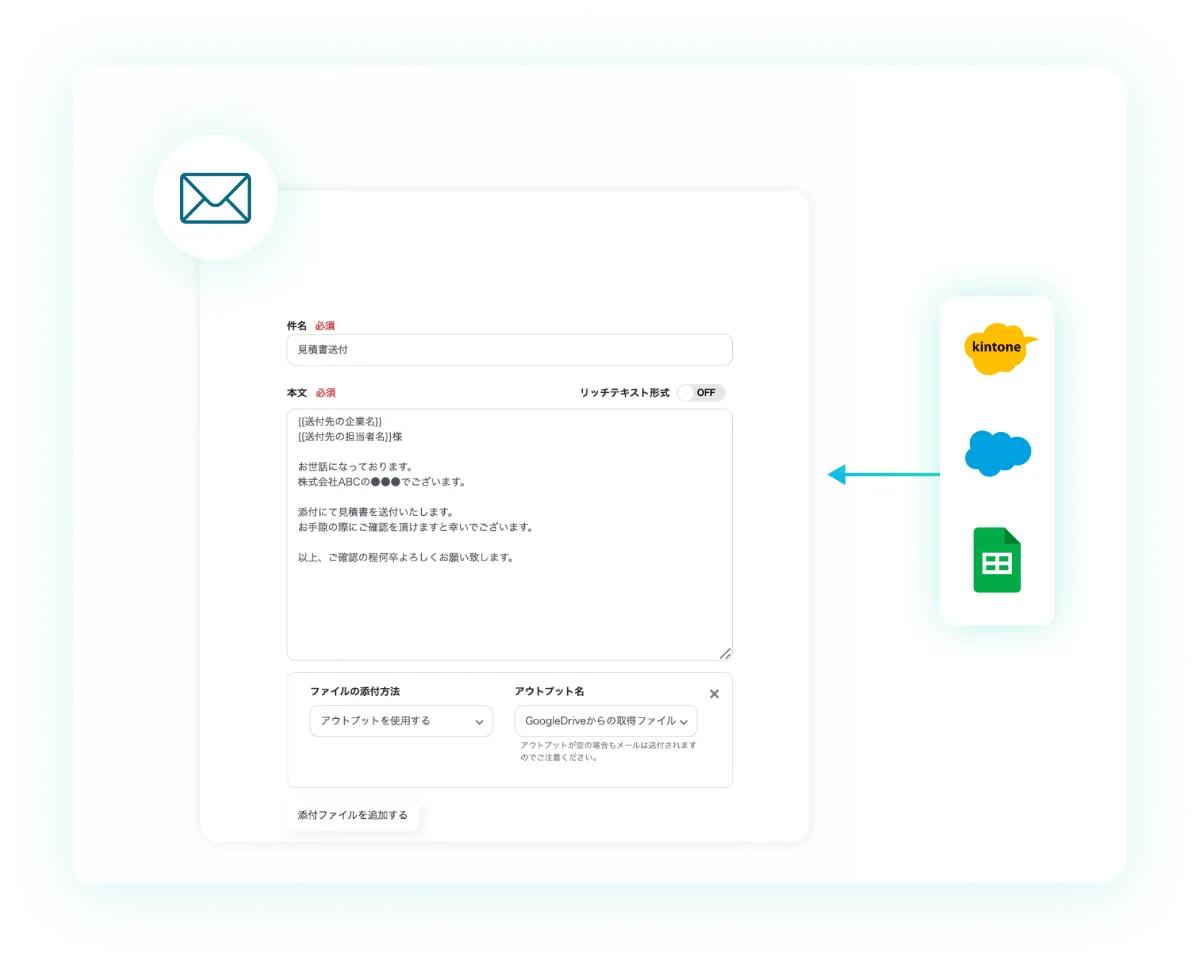kintoneやSalesforceなどのCRMの情報で自動的に見積書を送信します。