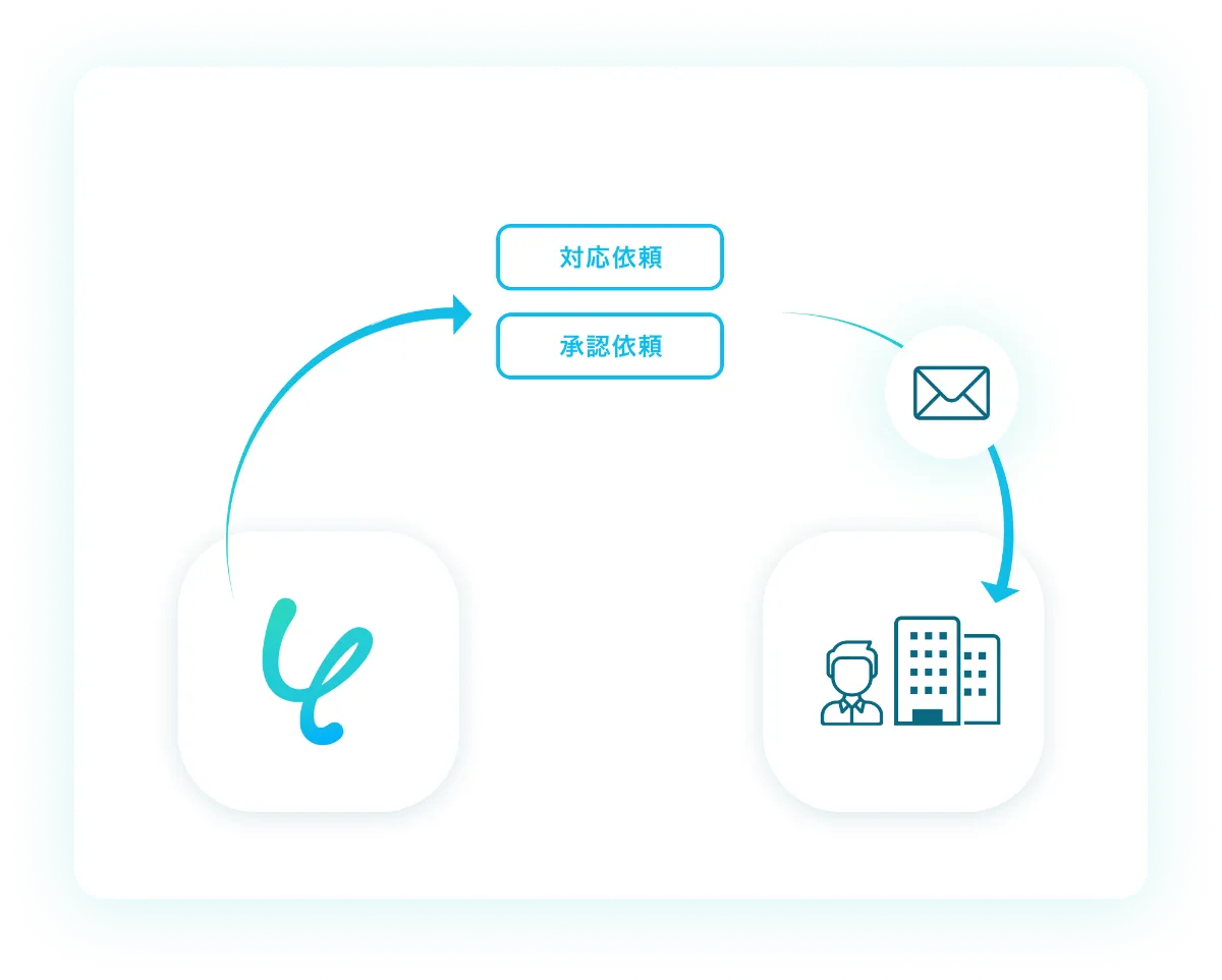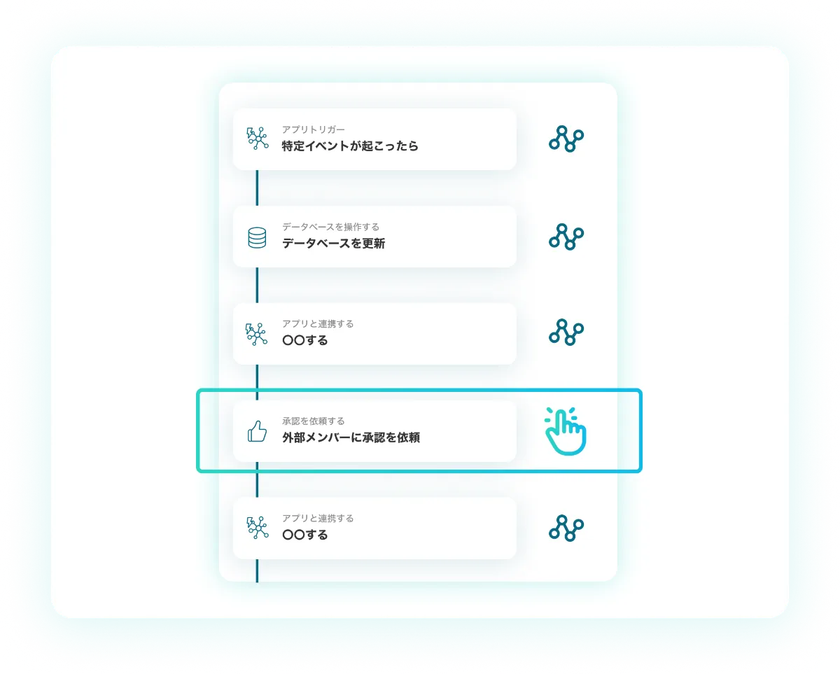 採用候補者や契約締結の相手方など社外メンバーへの対応・承認依頼をフローに組み込み業務を自動化することができます。