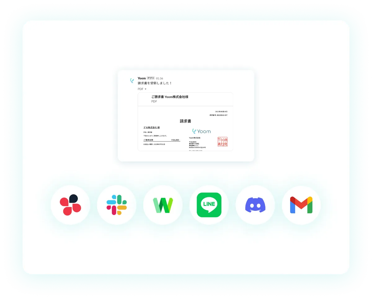 添付ファイルを自動でチャットツールに通知して簡単に確認することができます。