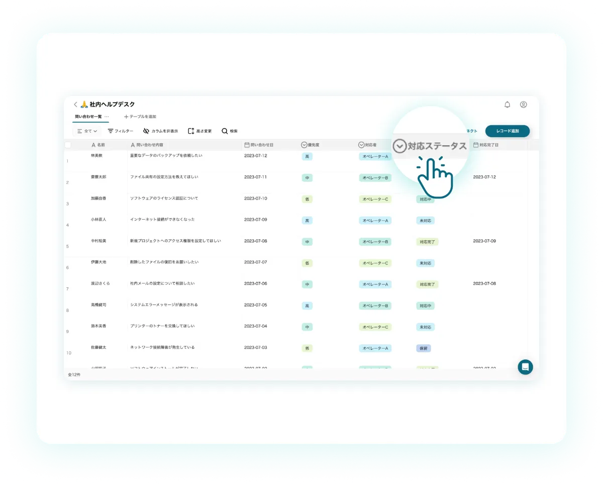 問い合わせ内容をデータベースで一元管理し、対応漏れを防止します。