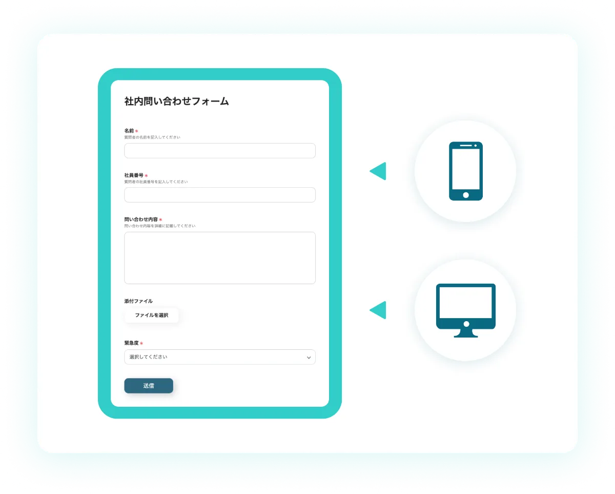 独自の入力フォームを作成し、社内からの問い合わせを集約します。