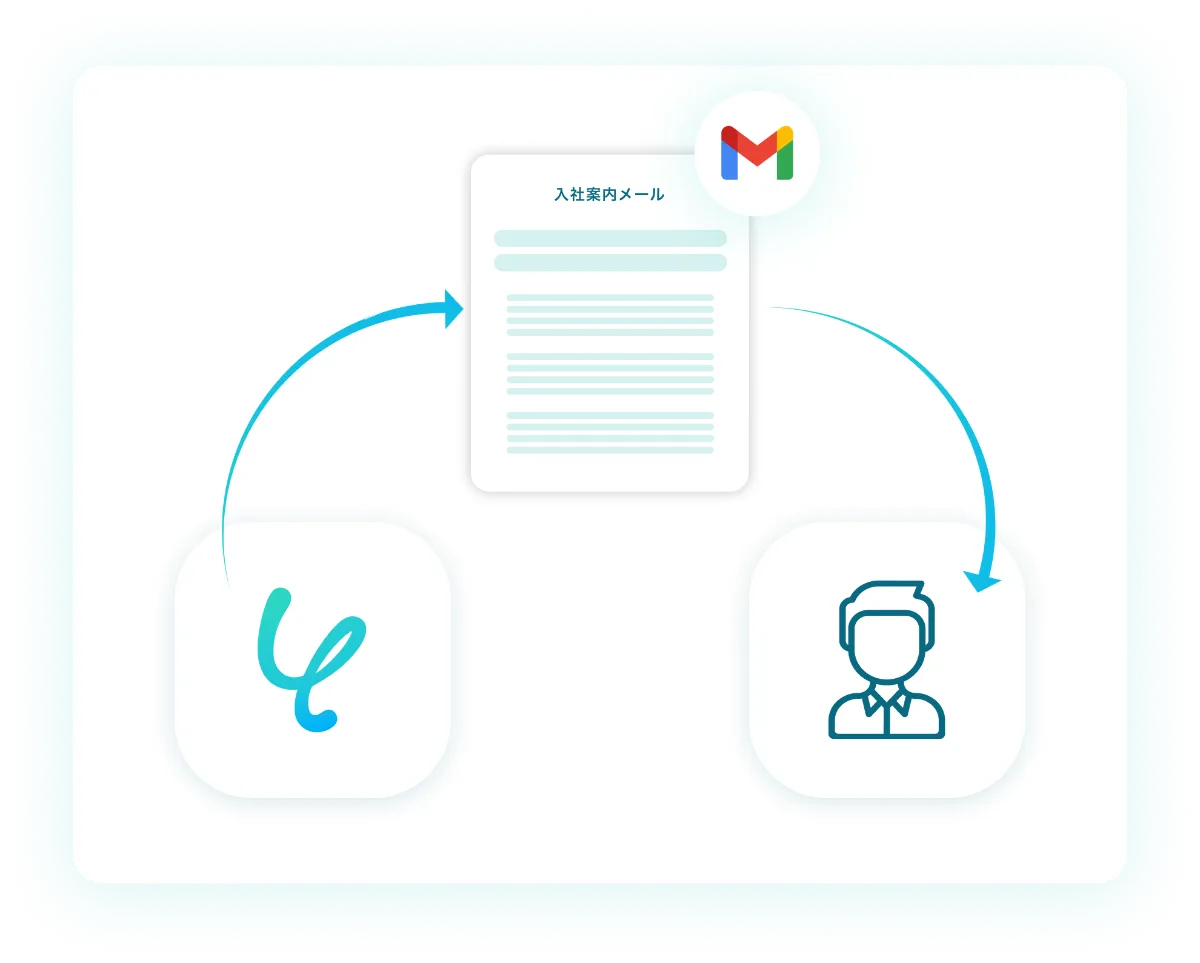 入社案内メールも自動で送付。内容や送付タイミングを自由に設定できます。