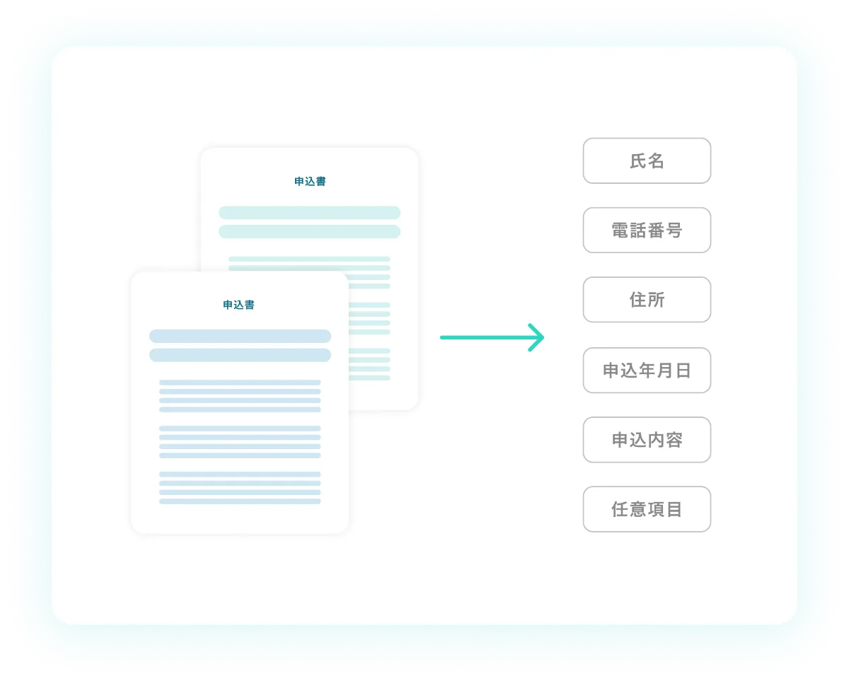 申込書の画像やPDFファイルから文字情報を自動で抽出してデータベースに追加するなどの業務を自動化します。