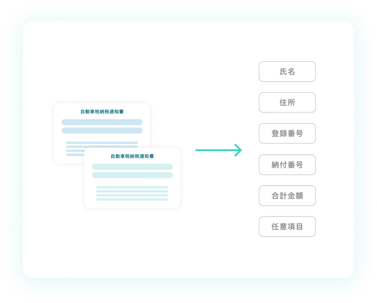 自動車税納税証明書の画像やPDFファイルから文字情報を自動で抽出してデータベースに追加するなどの業務を自動化します。