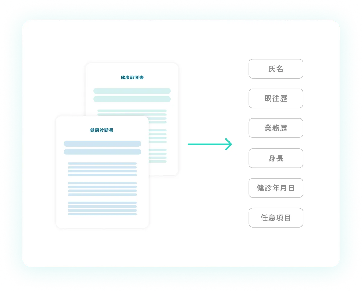 健康診断書の画像やPDFファイルから文字情報を自動で抽出してデータベースに追加するなどの業務を自動化します。