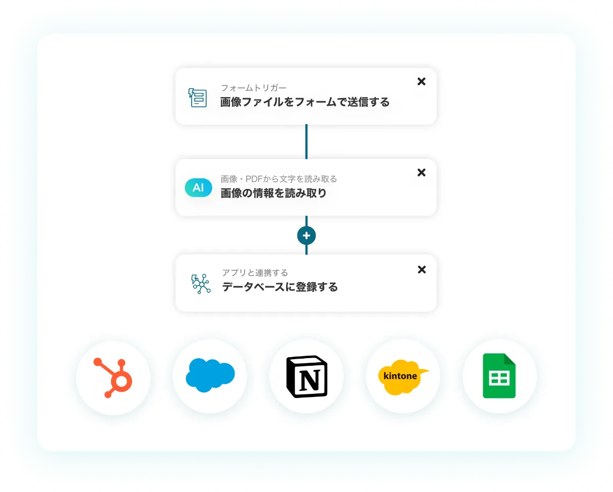 読み取った情報をスプレッドシートやお使いのツールにそのまま自動で登録できます。