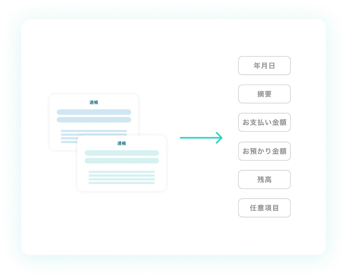 通帳の画像やPDFファイルから文字情報を自動で抽出してデータベースに追加するなどの業務を自動化します。