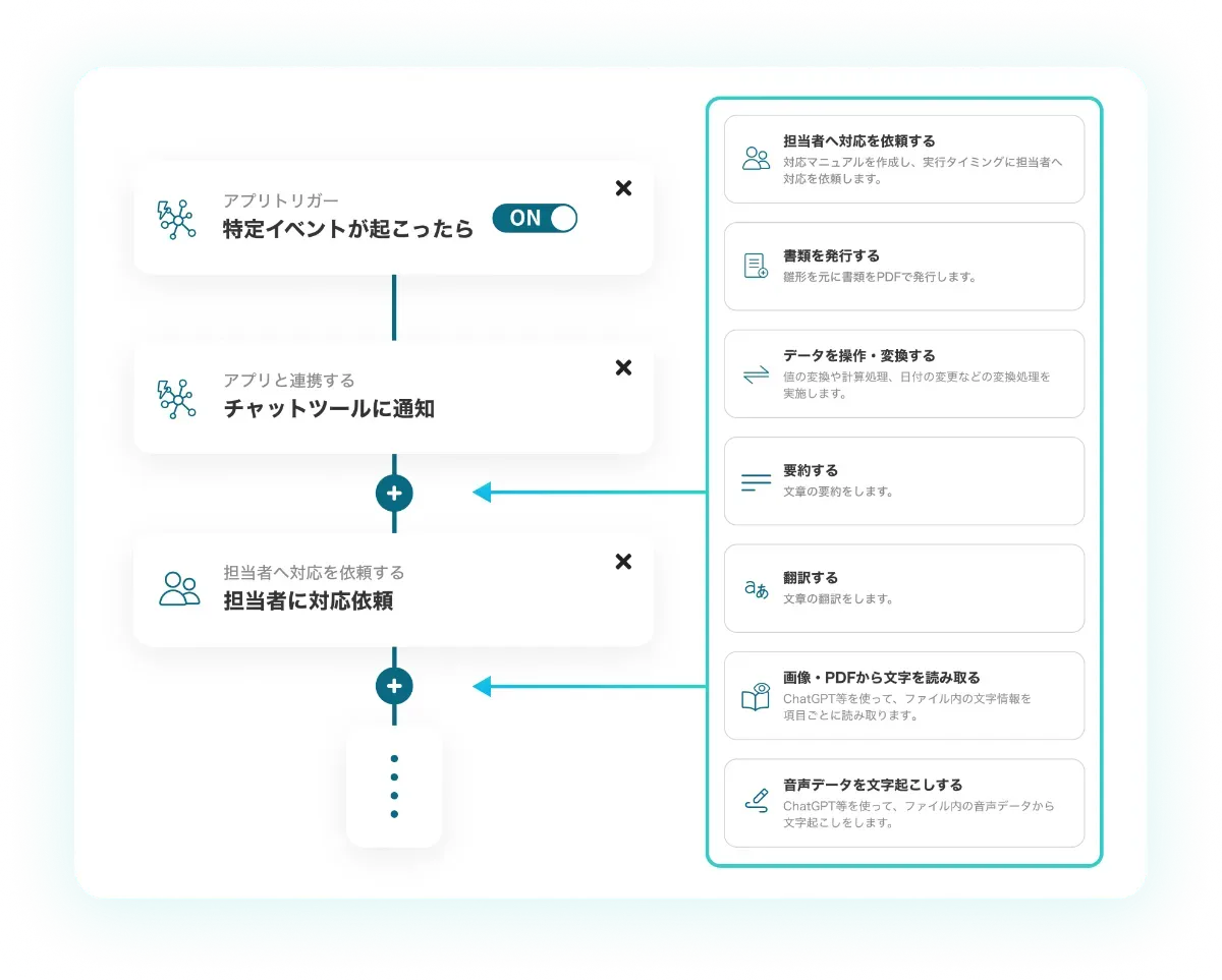 簡単な画面操作だけでAI-OCRを組み込んだ業務フローをすぐに自動化できます。