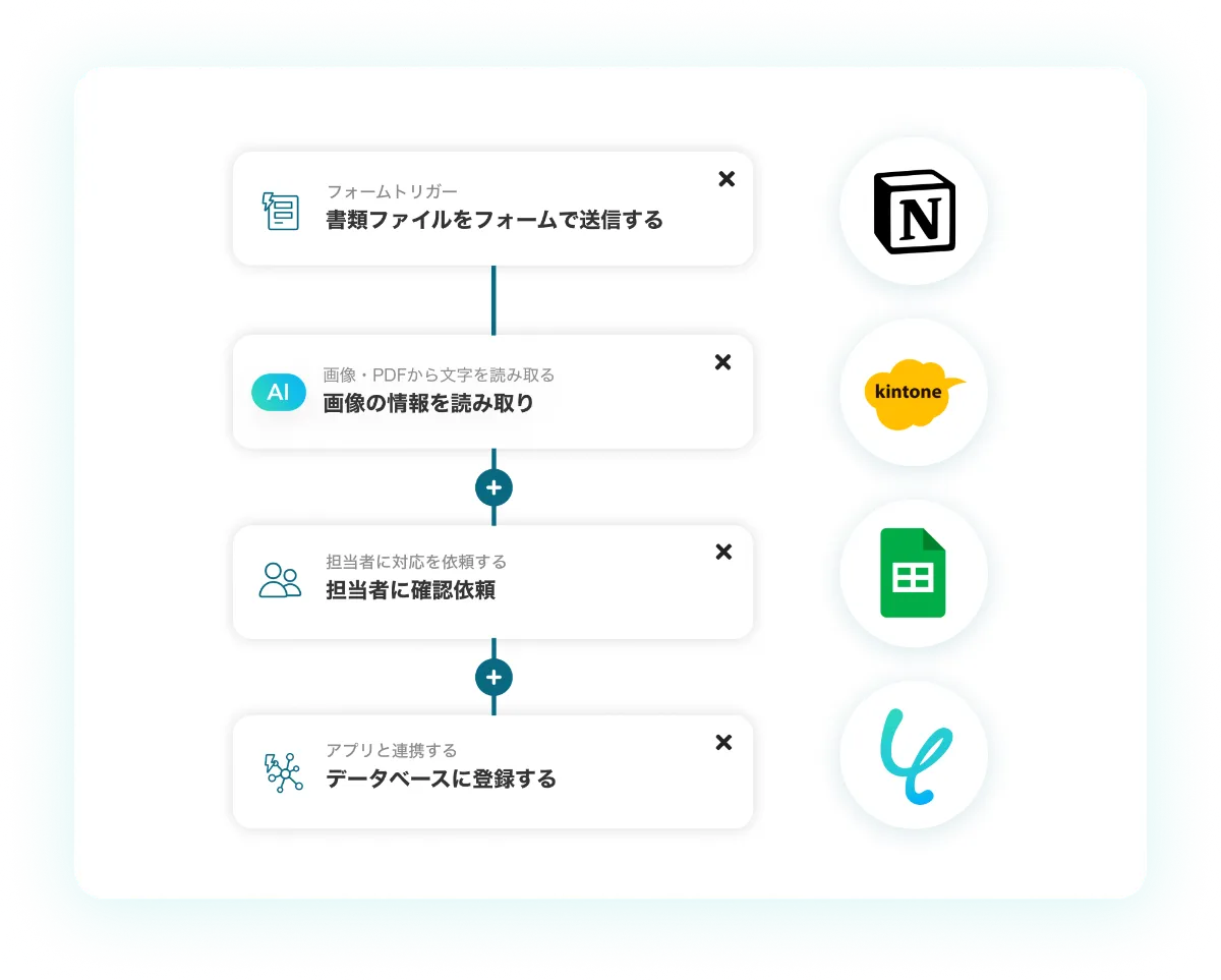 読み取った情報をスプレッドシートやお使いのツールに自動登録できます。