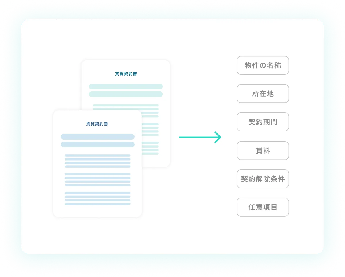 賃貸借契約書の画像やPDFファイルから文字情報を自動で抽出してデータベースに追加するなどの業務を自動化します。