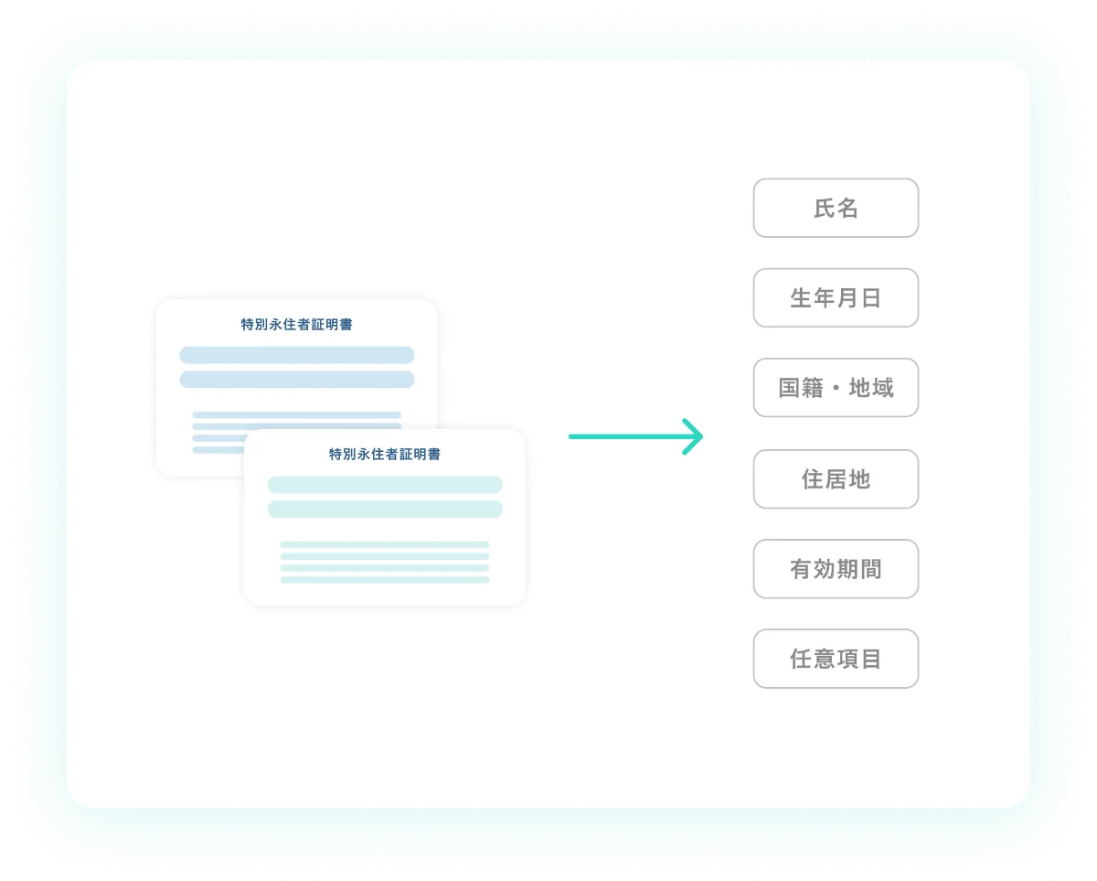 特別永住者証明書の画像やPDFファイルから文字情報を自動で抽出してデータベースに追加するなどの業務を自動化します。