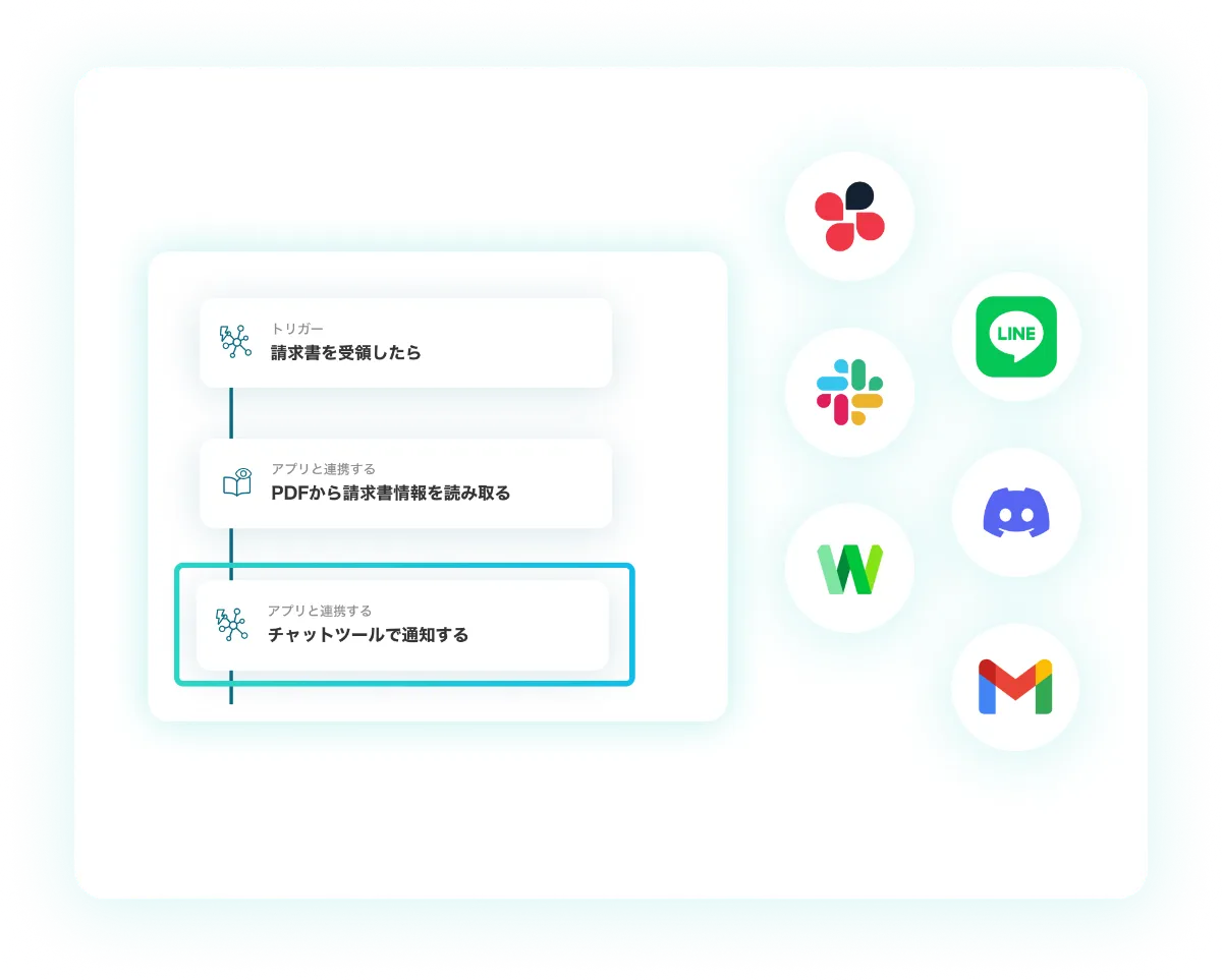 受領した請求書ファイルとともに読み取った情報をチャットツールに通知することも可能です。