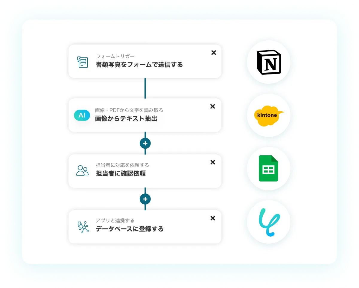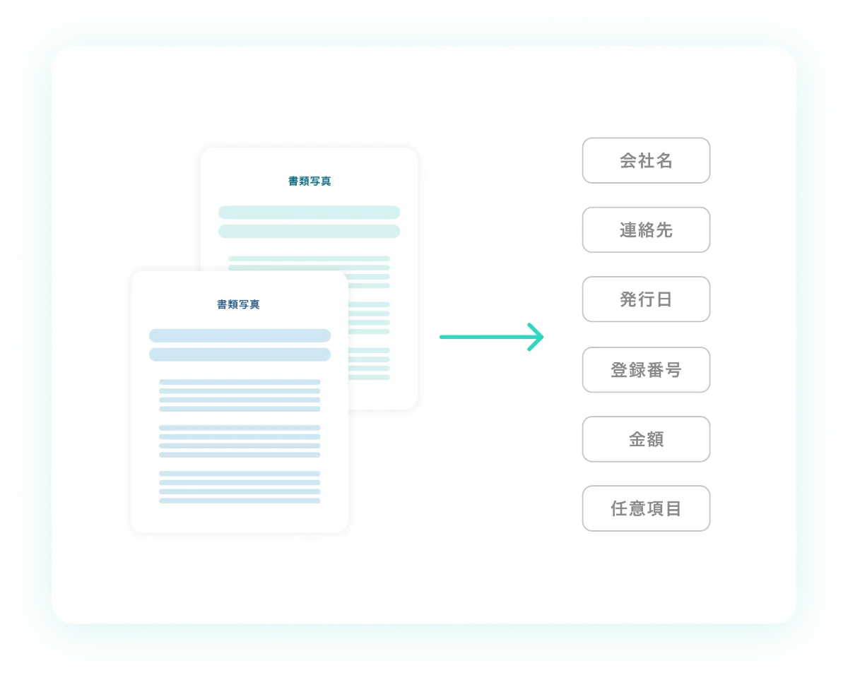 書類等の写真からテキストやデータをAIで自動抽出して、任意のデータベースに追加するなどの業務を自動化します。